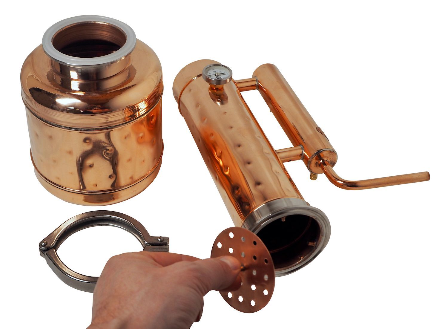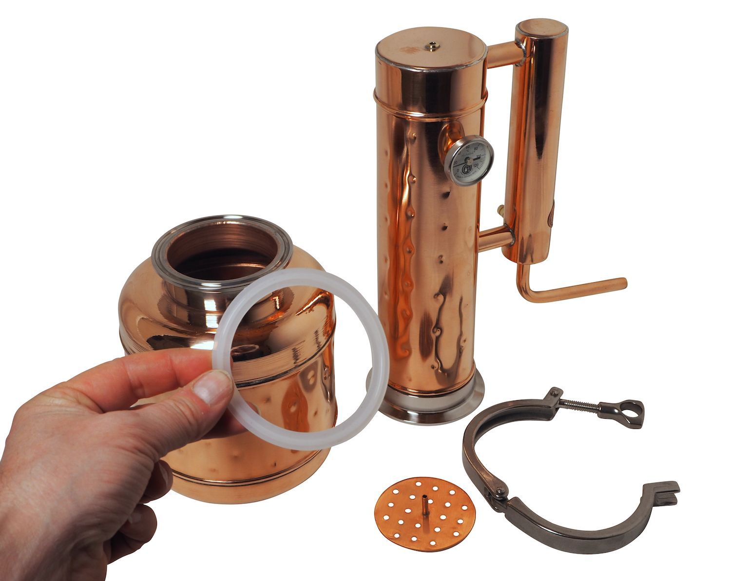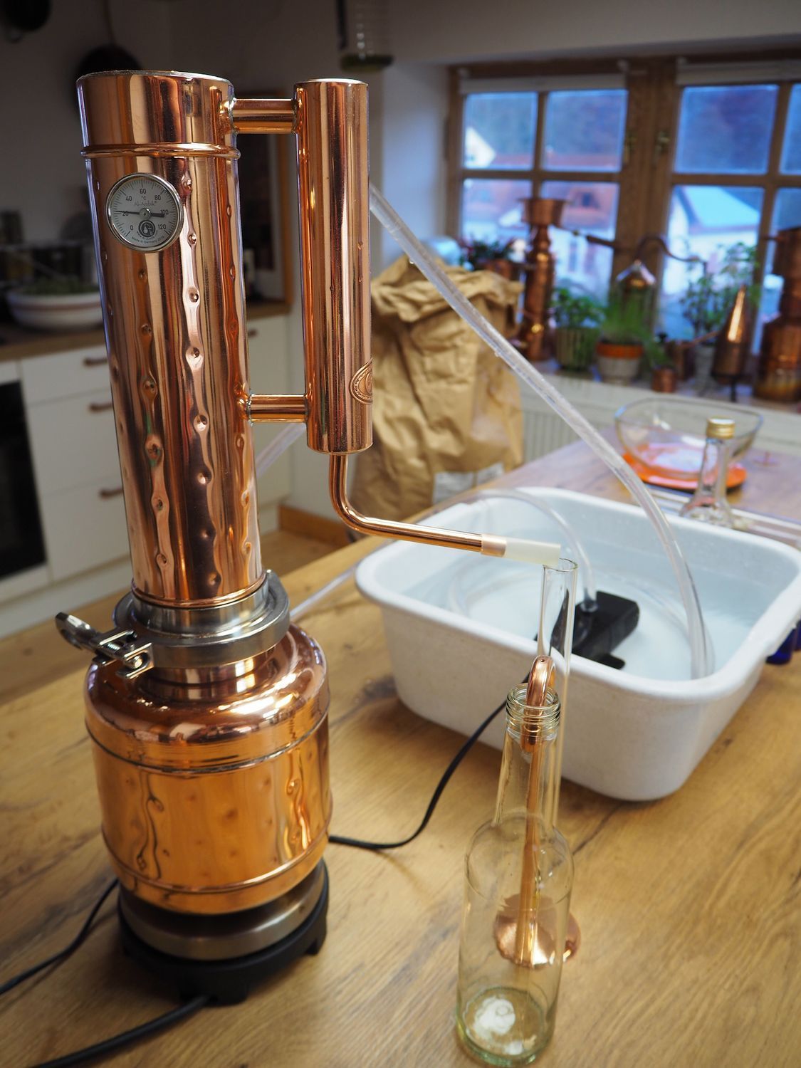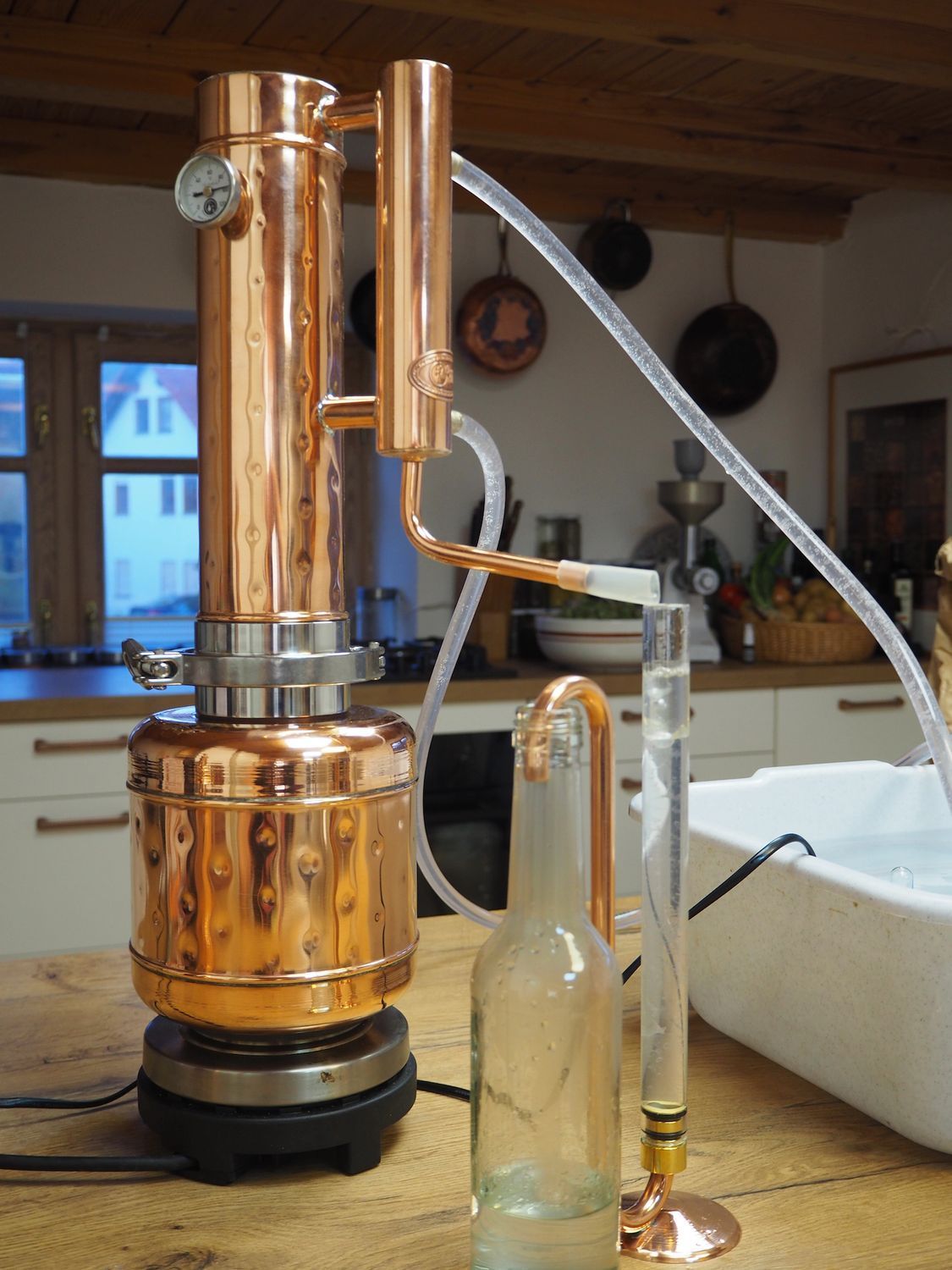 Gefahrenhinweis: Bei sachgemäßer Benutzung birgt diese Kräuterdestille keine besonderen Gefahren. Sie sollten trotzdem wissen, Kupfer bietet eine extrem gute Wärmeleitfähigkeit. Die Destille wird heiß bei der Benutzung. Bitte seien Sie vorsichtig und beachten Sie die beiliegende Gebrauchsanleitung.