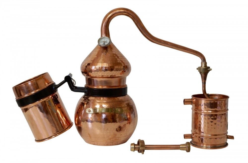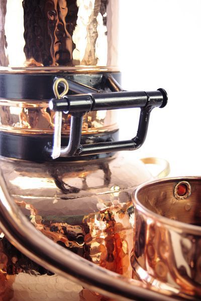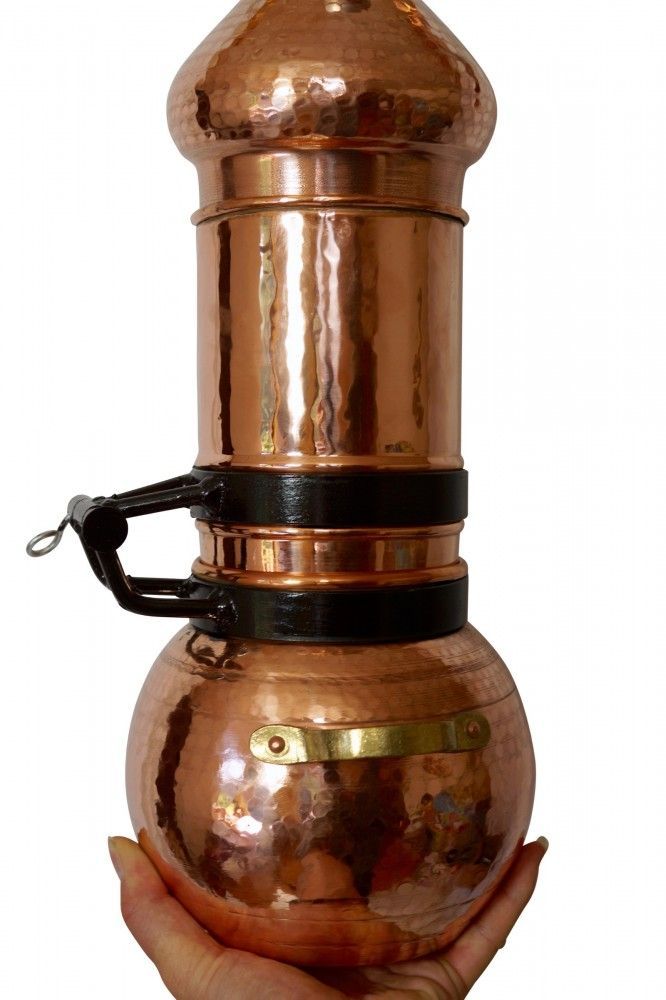Gefahrenhinweis: Bei sachgemäßer Benutzung birgt diese Kräuterdestille keine besonderen Gefahren. Sie sollten trotzdem wissen, Kupfer bietet eine extrem gute Wärmeleitfähigkeit. Die Destille wird heiß bei der Benutzung. Bitte seien Sie vorsichtig und beachten Sie die beiliegende Gebrauchsanleitung.