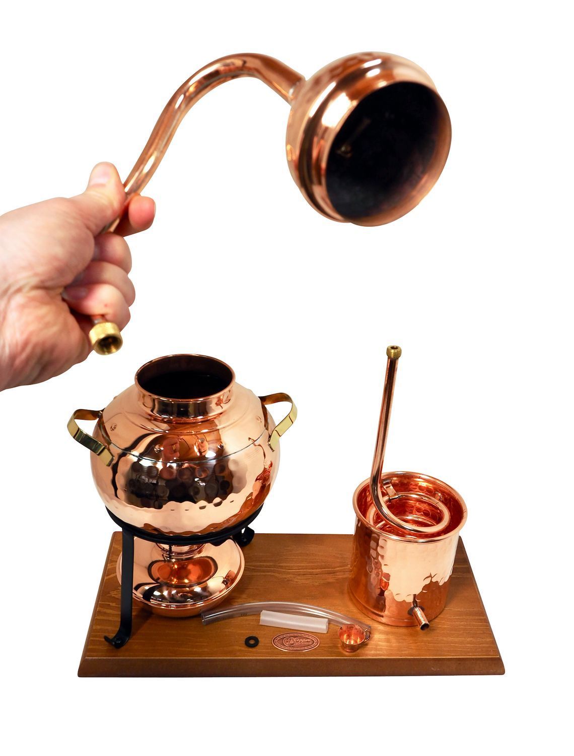 Gefahrenhinweis: Bei sachgemäßer Benutzung birgt diese Destille keine besonderen Gefahren. Sie sollten trotzdem wissen, Kupfer bietet eine extrem gute Wärmeleitfähigkeit. Die Destille wird heiß bei der Benutzung. Bitte seien Sie vorsichtig und beachten Sie die beiliegende Gebrauchsanleitung.