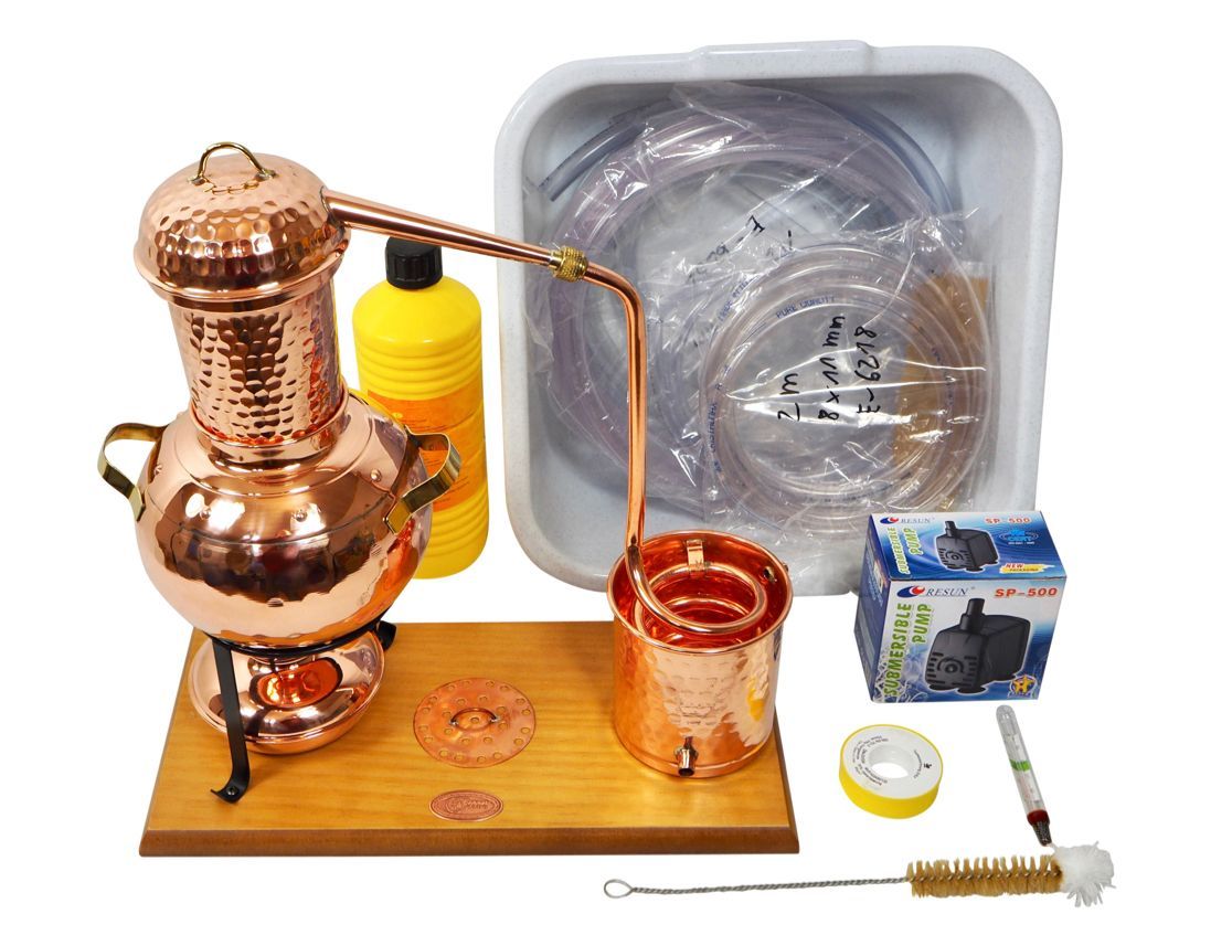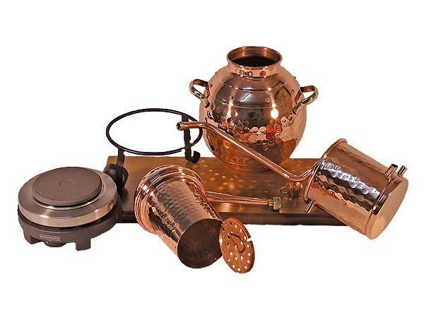 Gefahrenhinweis: Bei sachgemäßer Benutzung birgt diese Kräuterdestille keine besonderen Gefahren. Sie sollten trotzdem wissen, Kupfer bietet eine extrem gute Wärmeleitfähigkeit. Die Destille wird heiß bei der Benutzung. Bitte seien Sie vorsichtig und beachten Sie die beiliegende Gebrauchsanleitung.