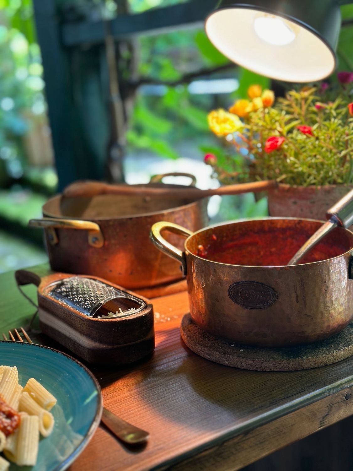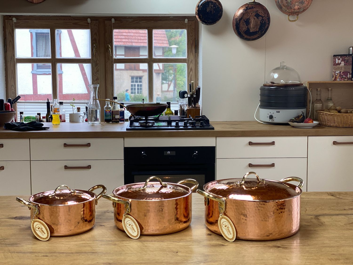 Gefahrenhinweis: Bei sachgemäßer Benutzung birgt dieser Topf keine besonderen Gefahren. Aber Sie sollten wissen: Kupfer bietet eine extrem gute Wärmeleitfähigkeit. Der Griff wird ebenso heiß wie das gesamte Gerät bei der Benutzung. Bitte seien Sie vorsichtig und benutzen Sie Topflappen und Untersetzer.