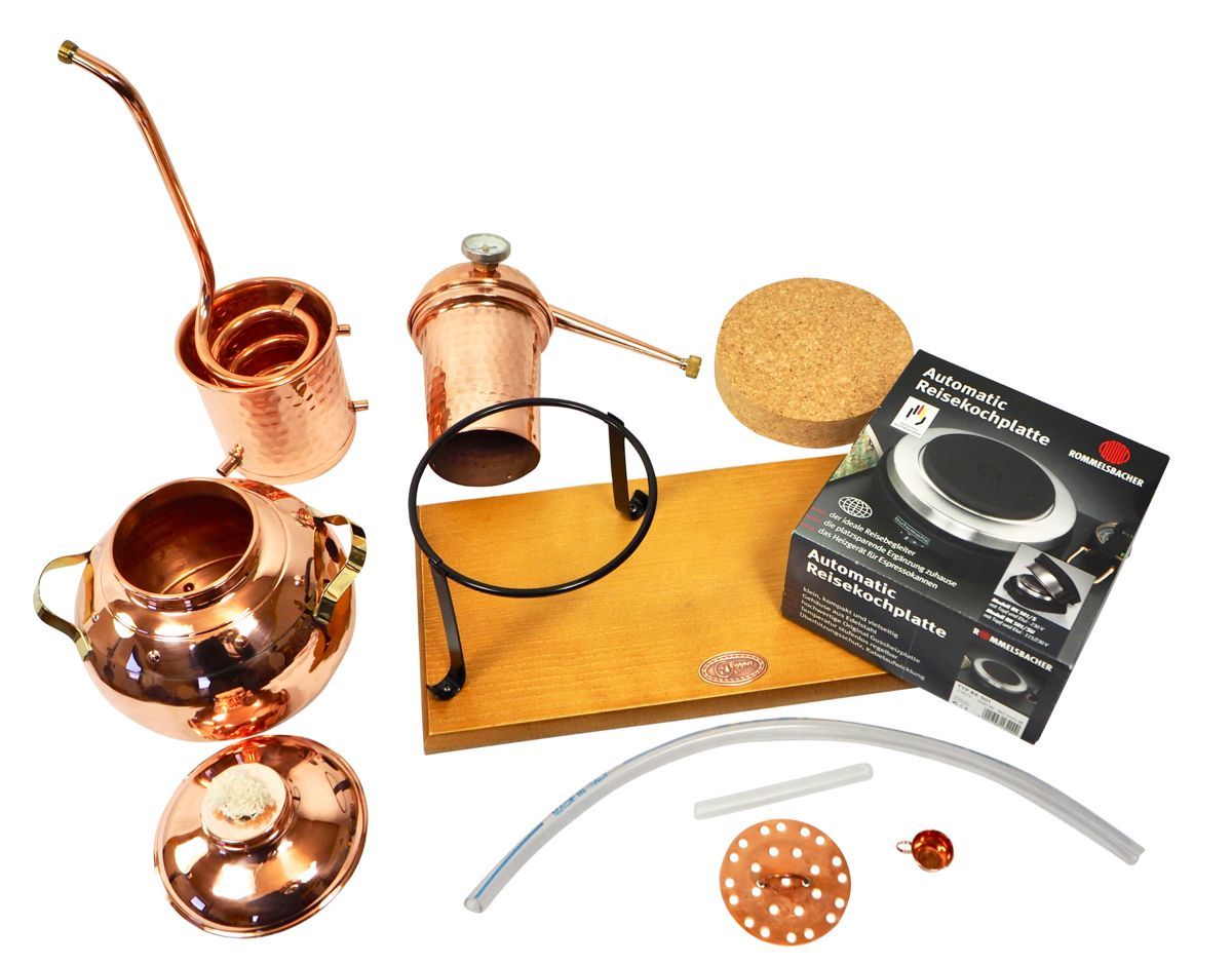 Gefahrenhinweis: Bei sachgemäßer Benutzung birgt diese Kräuterdestille keine besonderen Gefahren. Sie sollten trotzdem wissen, Kupfer bietet eine extrem gute Wärmeleitfähigkeit. Die Destille wird heiß bei der Benutzung. Bitte seien Sie vorsichtig und beachten Sie die beiliegende Gebrauchsanleitung.