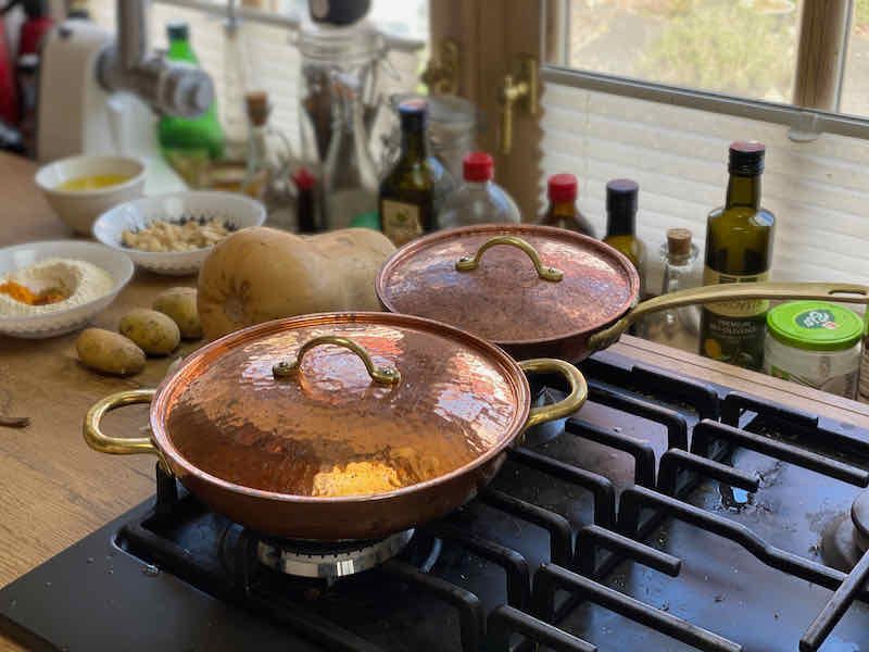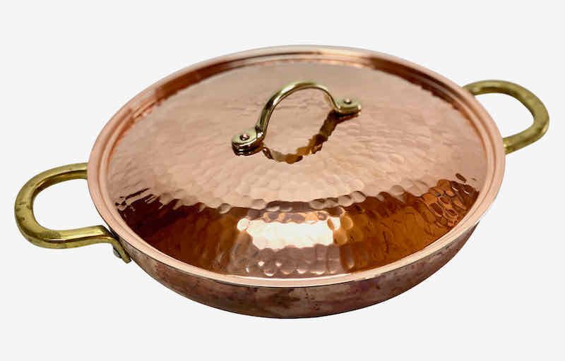 Warum verzinntes Kupfer? Kupfer bietet die beste Wärmeleitfähigkeit. Mit einem Kern oder einer Beschichtung aus Aluminium oder Stahl geht dieser Vorteil verloren. Die Verzinnung ist 100 % unbedenklich, da der Körper Zinn einfach wieder ausscheidet. Trotzdem bleibt die Wärmeleitfähigkeit erhalten. Außerdem bietet Zinn in Verbindung mit etwas Öl hervorragende Antihaft Eigenschaften. Sie werden es lieben.