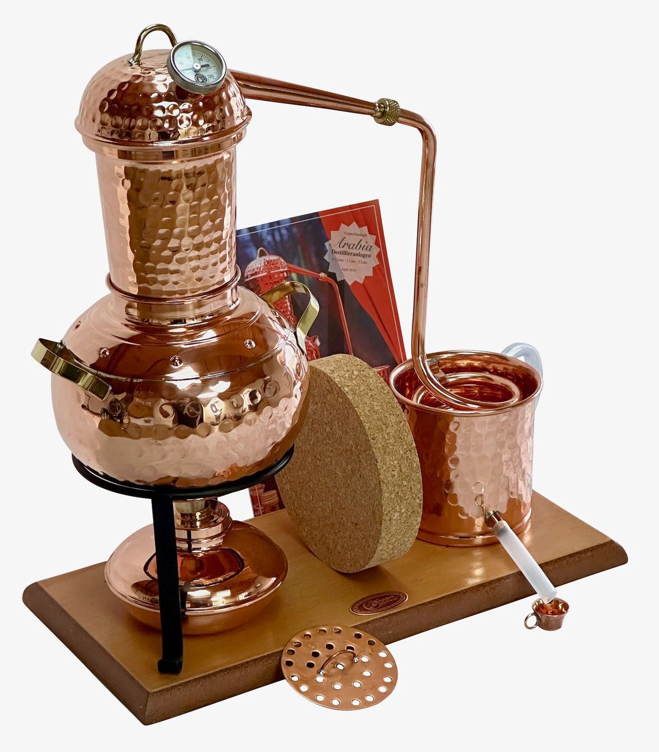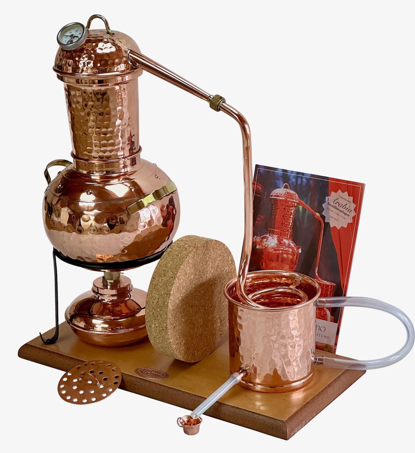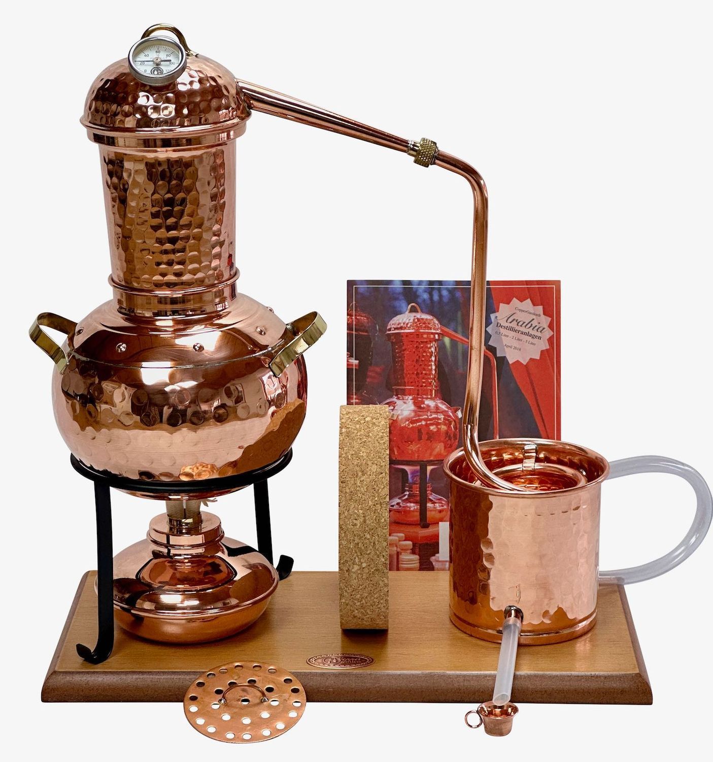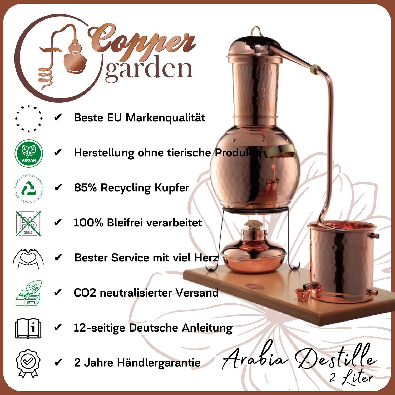 CopperGarden®" Tischdestille Arabia 2 Liter mit Spiritusbrenner & Aromasieb