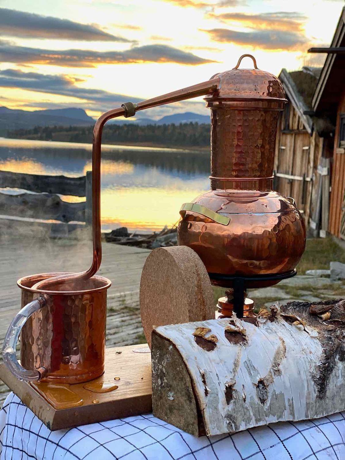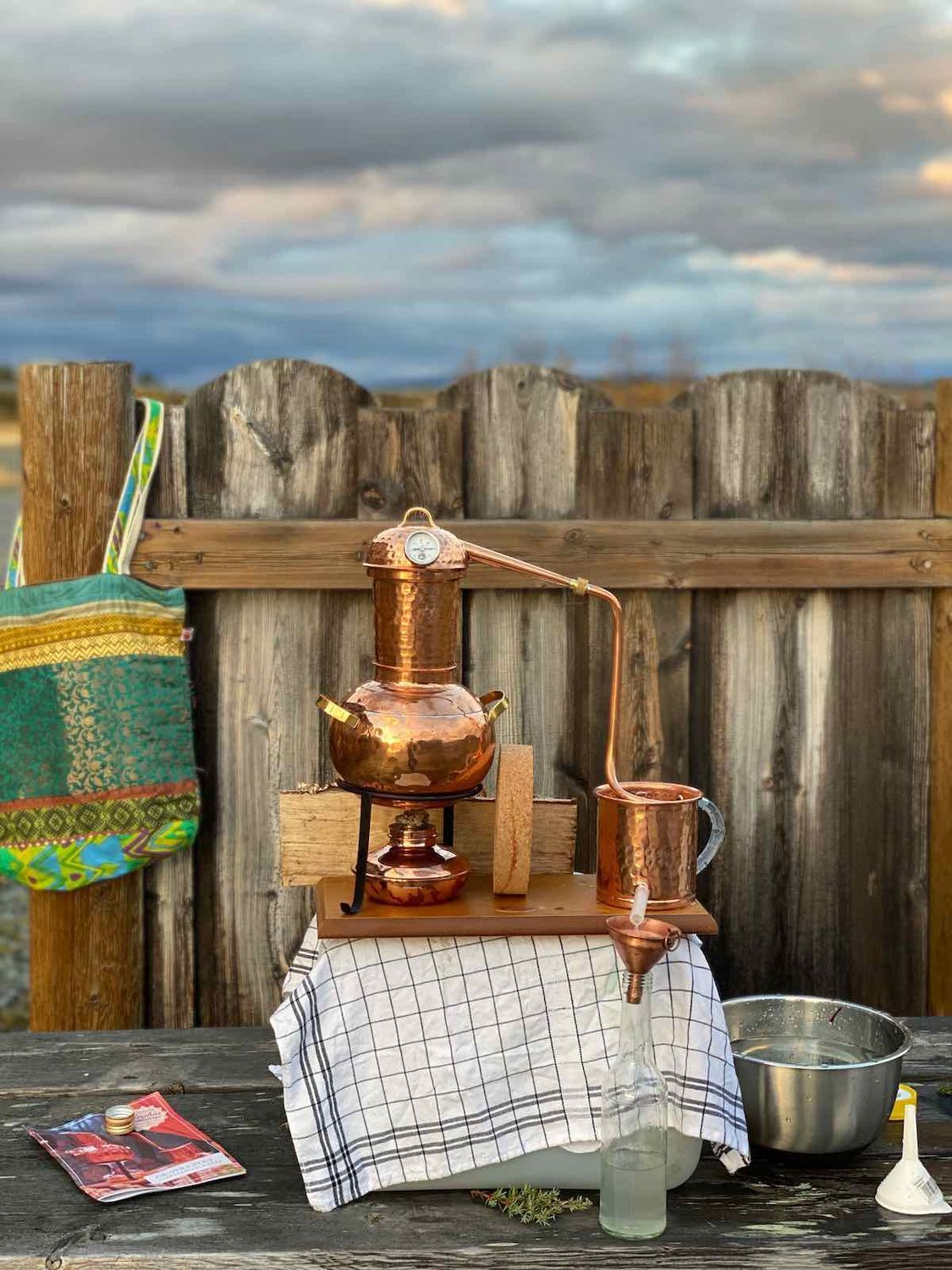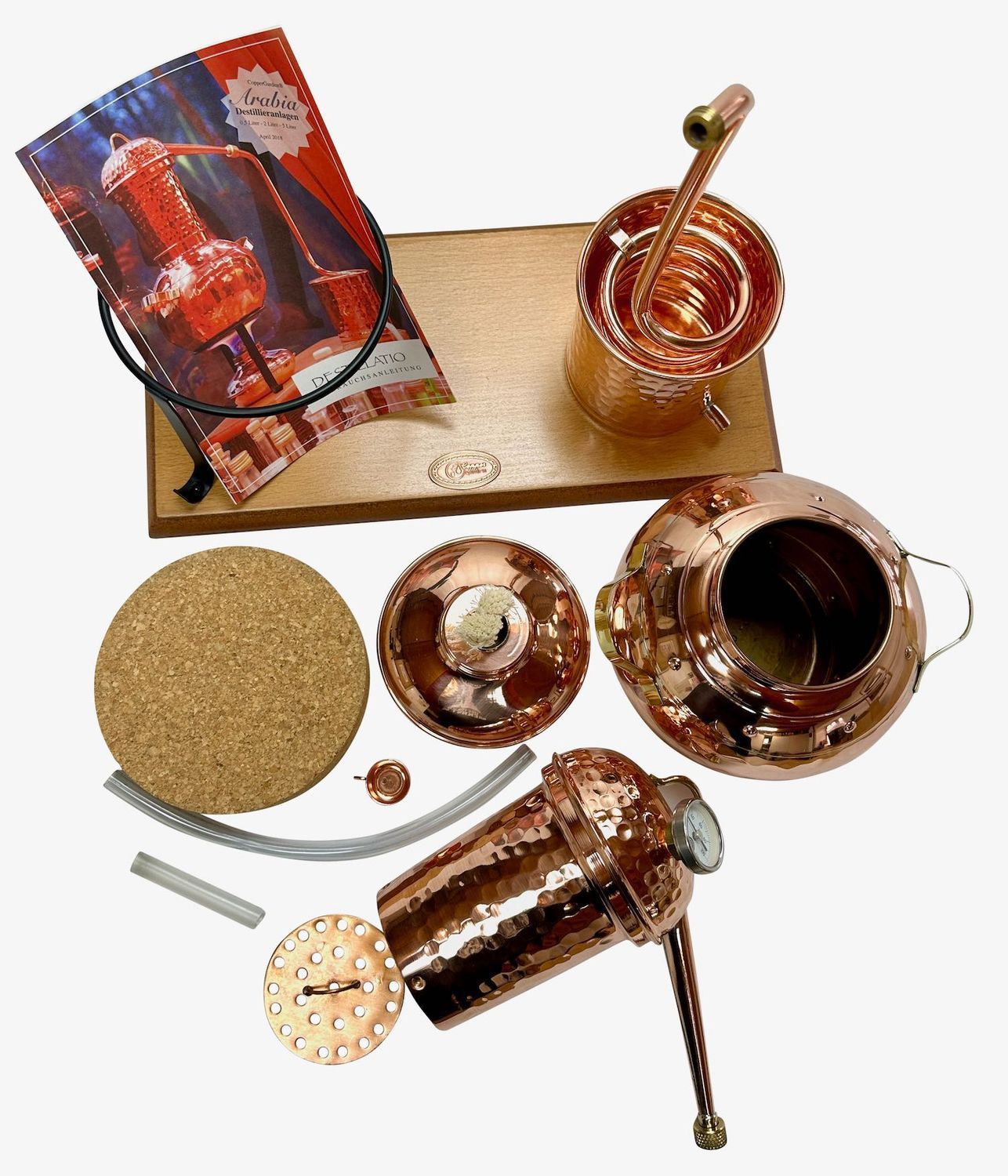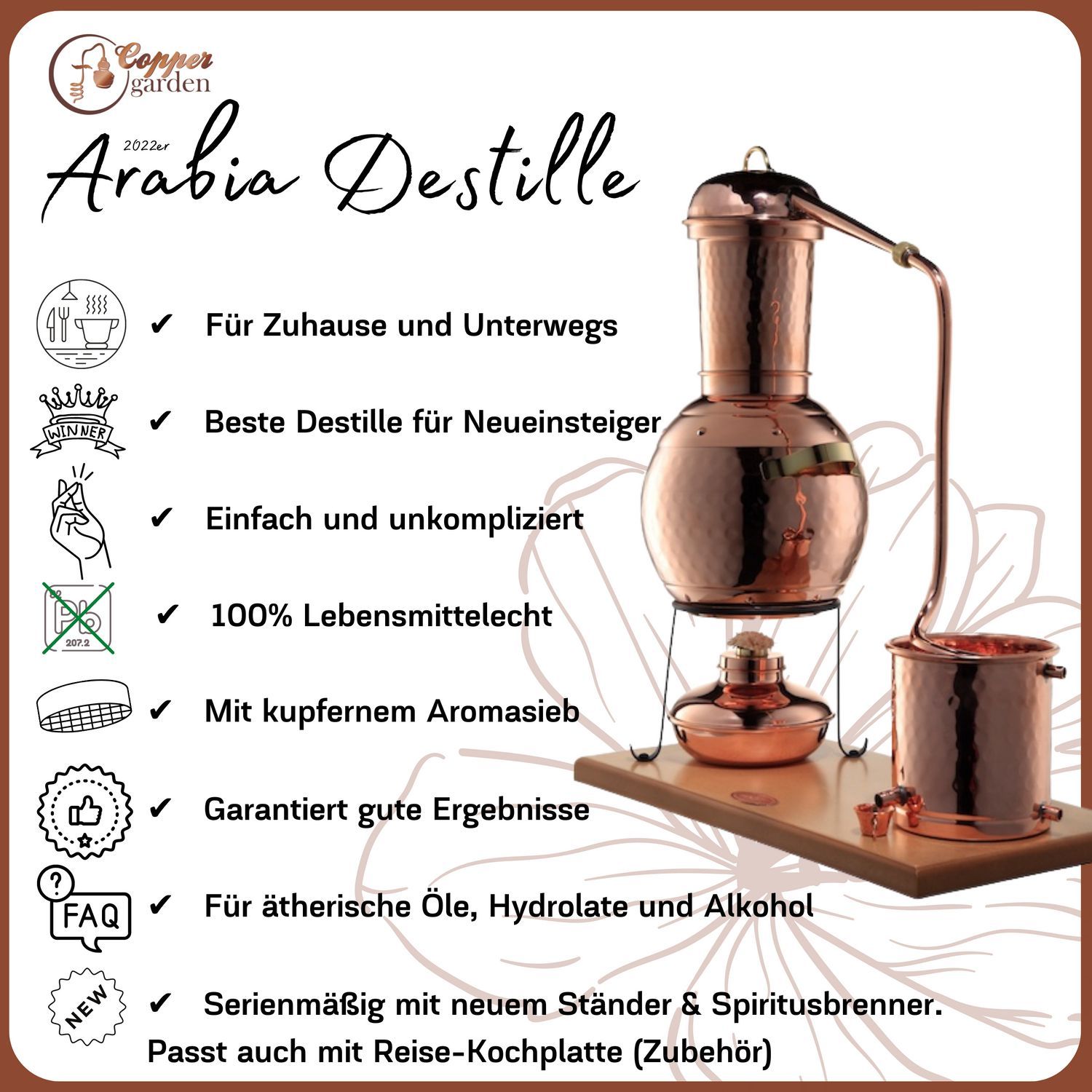 CopperGarden®" Tischdestille Arabia 2 Liter mit Spiritusbrenner & Aromasieb