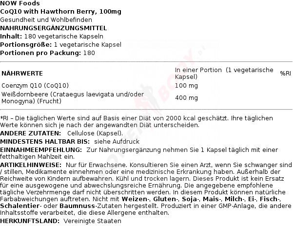 NOW Foods CoQ10 with Hawthorn Berry, 100mg - 30 vcaps