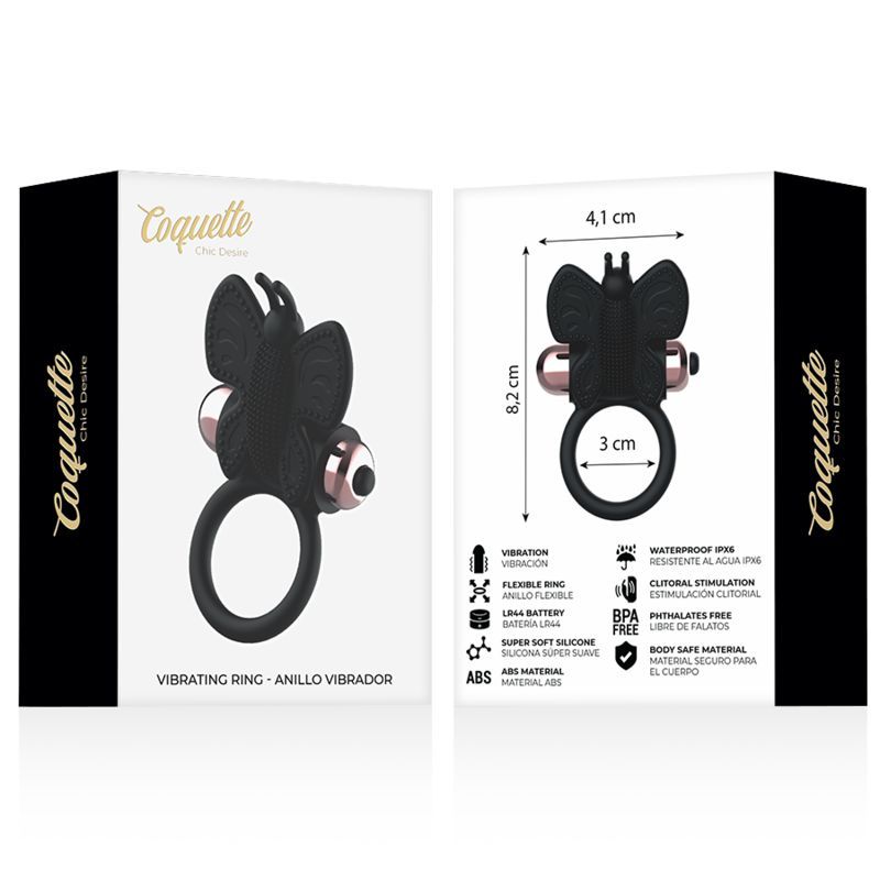 Coquette CHIC DESIRE - Cockring Schmetterling MIT Vibrator Schwarz/ GOLD