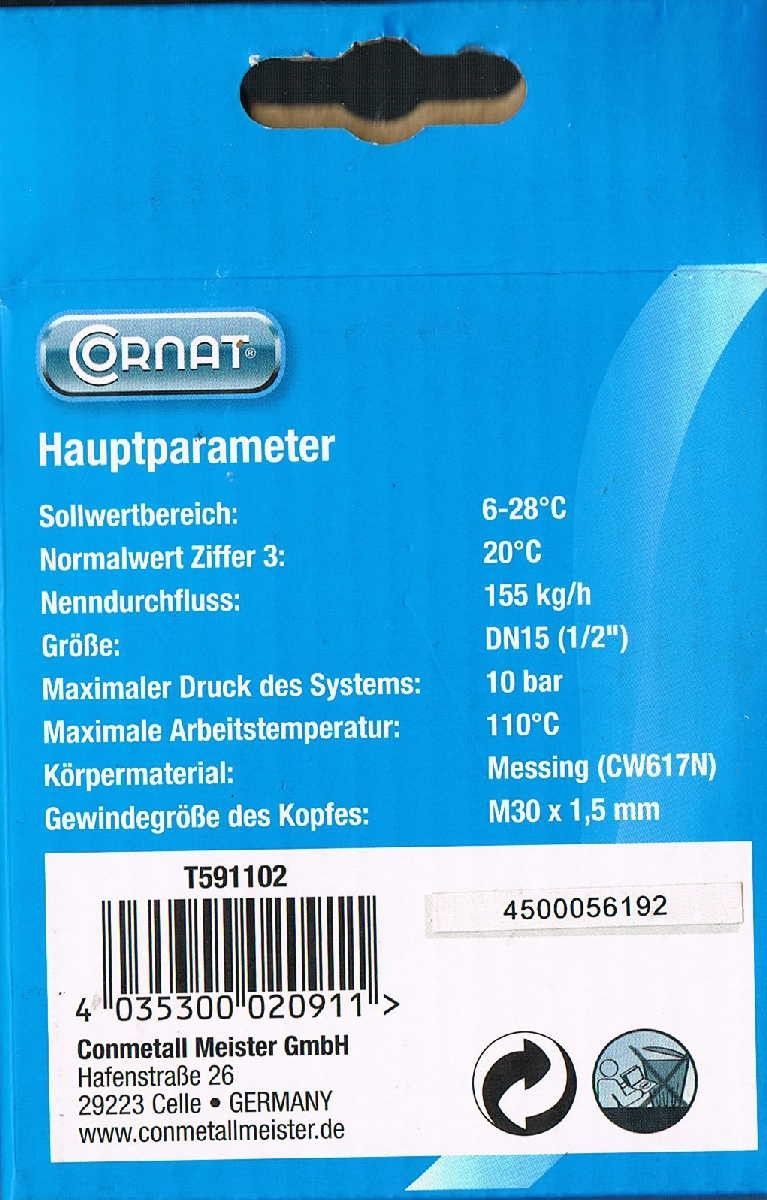Cornat Cornat Thermostat-Eckventil mit Thermostatkopf 1/2"x30x1,5mm Neuware