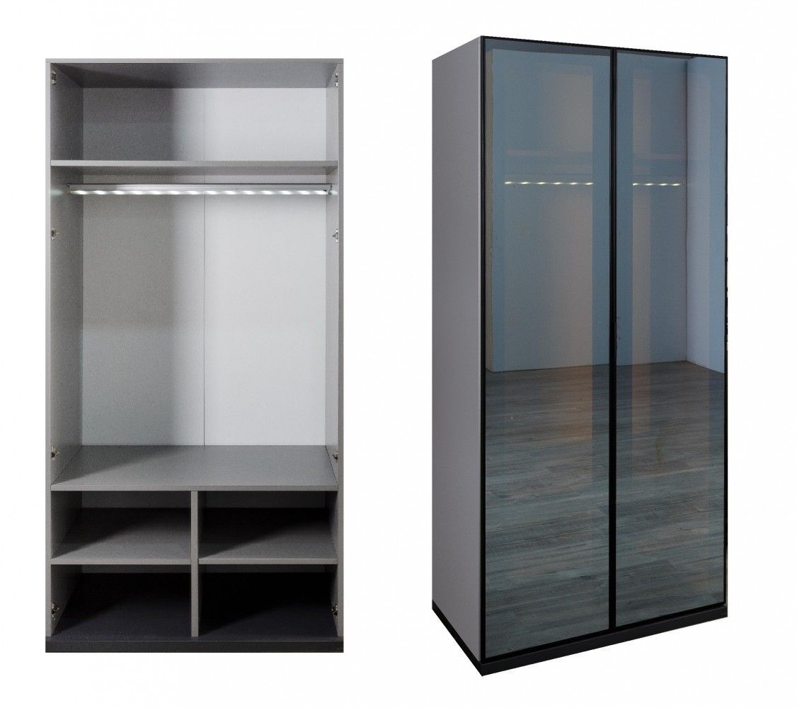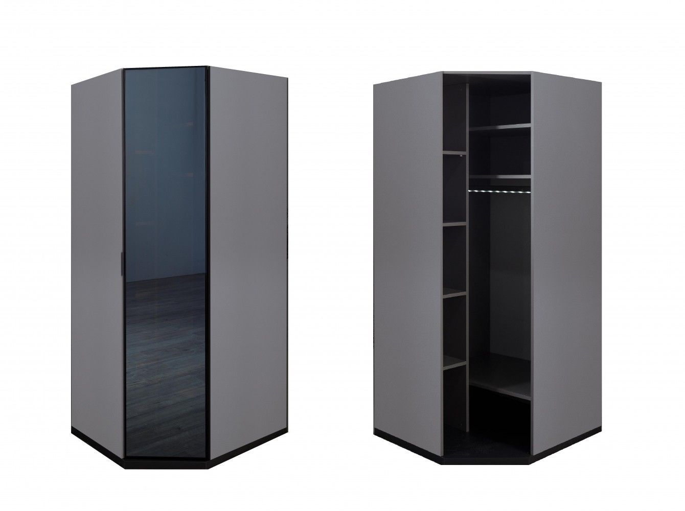 Corner Eckkleiderschrank Kombination 3-teilig COR-ECK01 Im Angebot enthalten : 1x Eckkleiderschrank Corner 1x Türe, verspiegelt 7x Einlegeböden 1x Kleiderstange mit LED Beleuchtung B H T: ca. 89x204x89 cm 1x Kleiderschrank Corner 2-türig 2x Türe, verspiegelt 4x Einlegeböden 1x Kleiderstange mit LED
