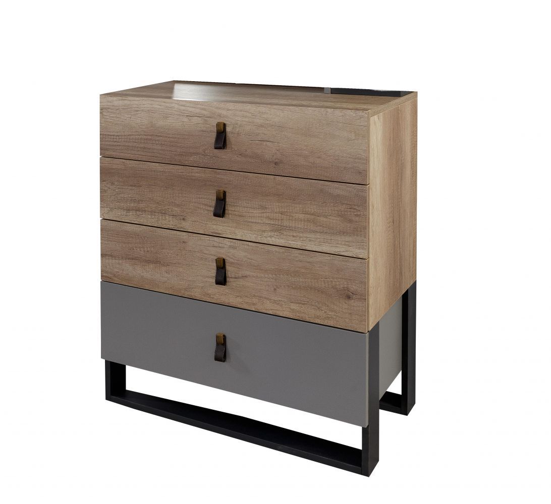Corner Kommode inklusive Spiegel mit Schubkästen inklusive Spiegel ohne Spiegel COR-WK-2 Farbausführung: Holzoptik Grau 1x Kommode Corner 3x Schubkasten, Holzoptik 1x Schubkasten, Grau Griffe aus Leder B H T: ca. 80x92x44 cm 1x Spiegel Corner 2x Regalboden B H T: ca. 80x67x14 cm Die Ware wird zerleg