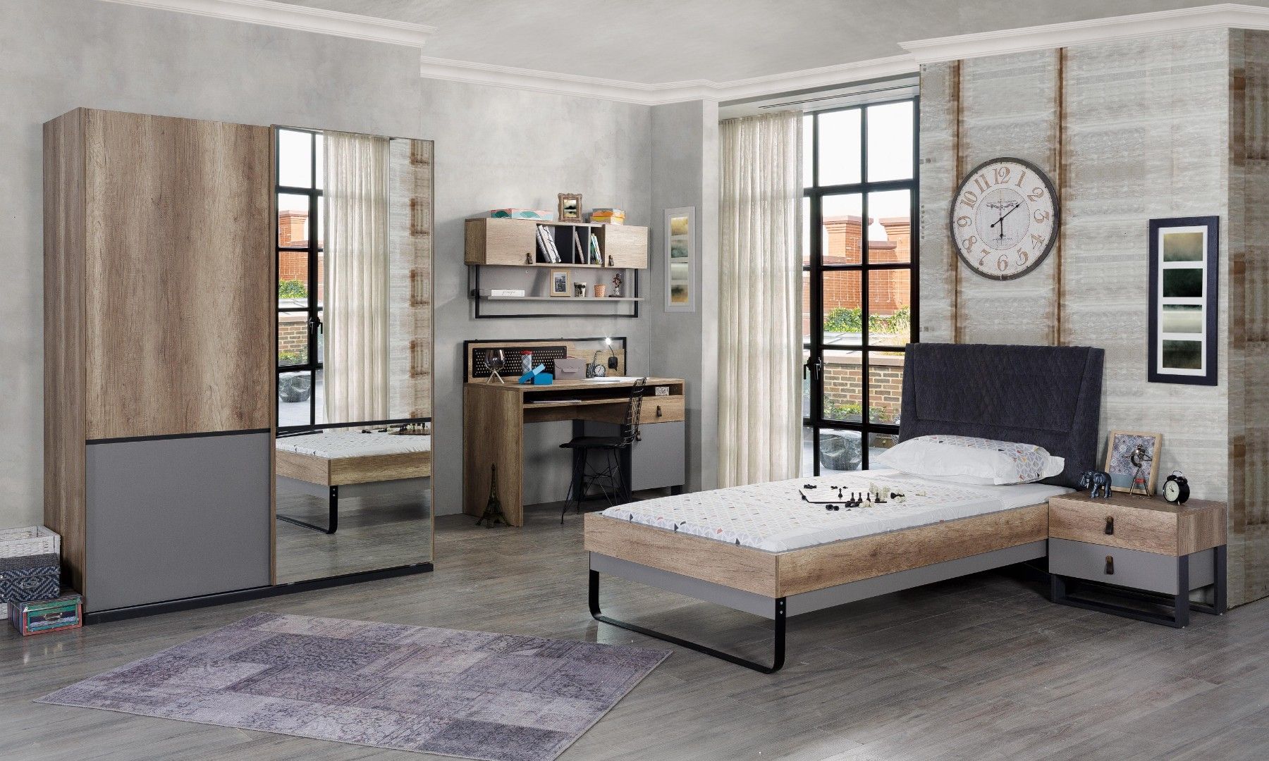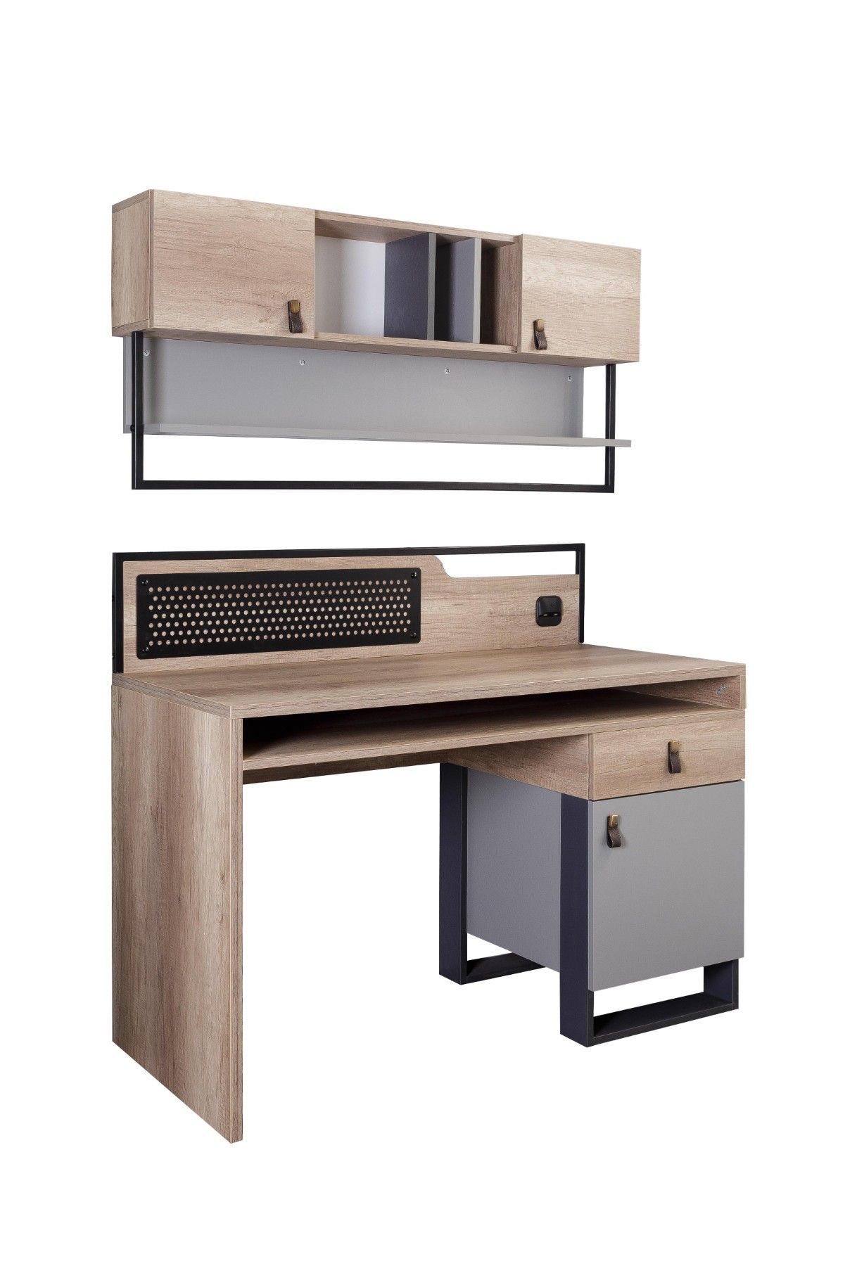 Corner Schreibtisch für Kinder in Grau mit Holzoptik
