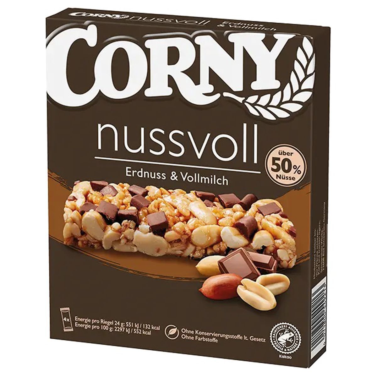 Corny Nussvoll Erdnuss und Vollmilchschokolade Riegel 4x24g 96g