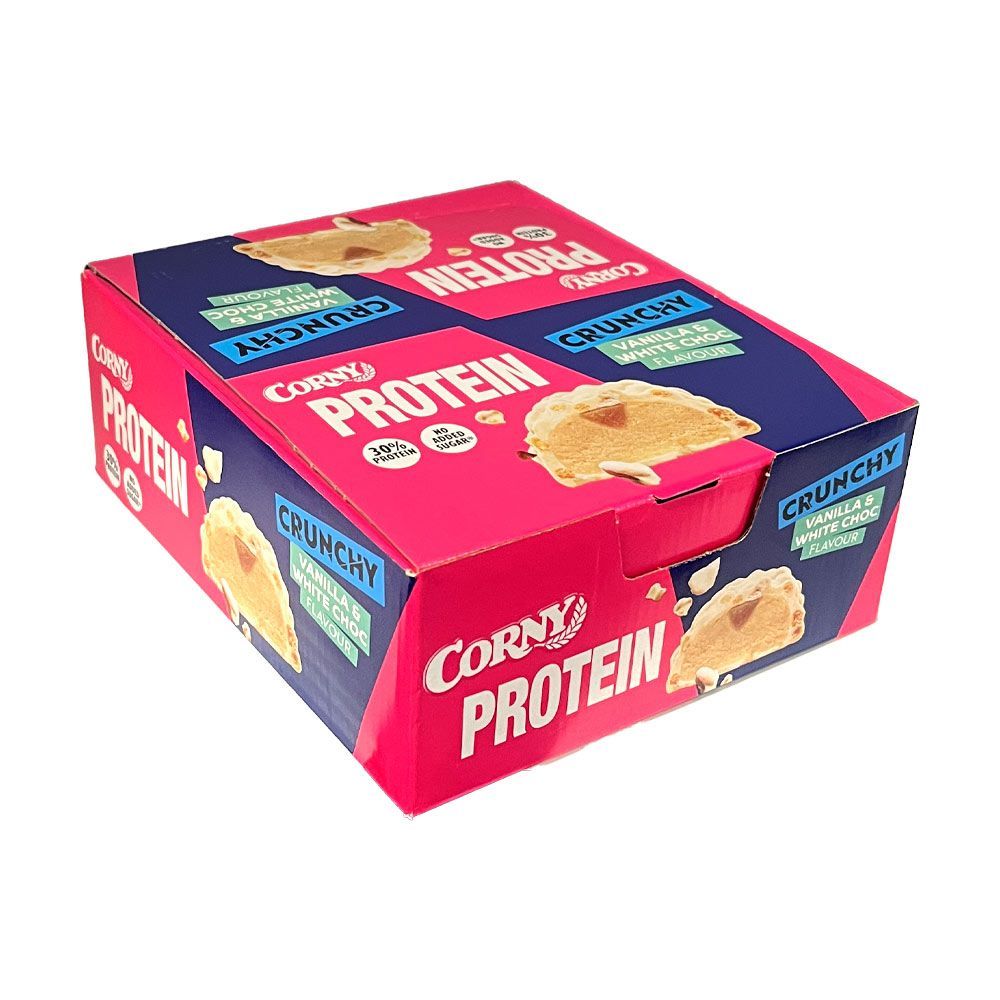 Corny Protein Riegel Crunchy Vanilla & White Choc Flavour, Kiste mit 12x 45g