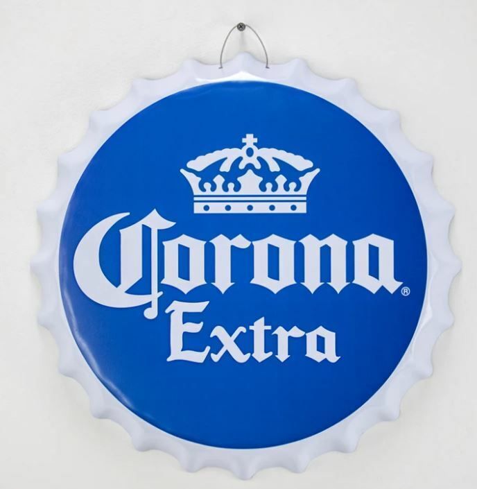 CORONA EXTRA Logo Kronkorkenschild- rund + gewölbt - 40,6 cm Durchmesser