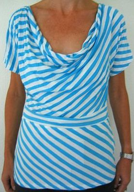 Schönes Okay Shirt mit tollem Ausschnitt, kurzarm, Weiß-Türkis, Gr. 38