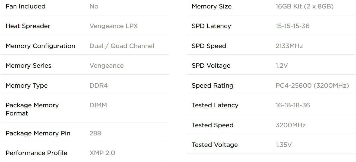 Corsair Vengeance LPX 16GB 2x8GB DDR4 3200MHz C16 XMP 2,0 High Performance Kit