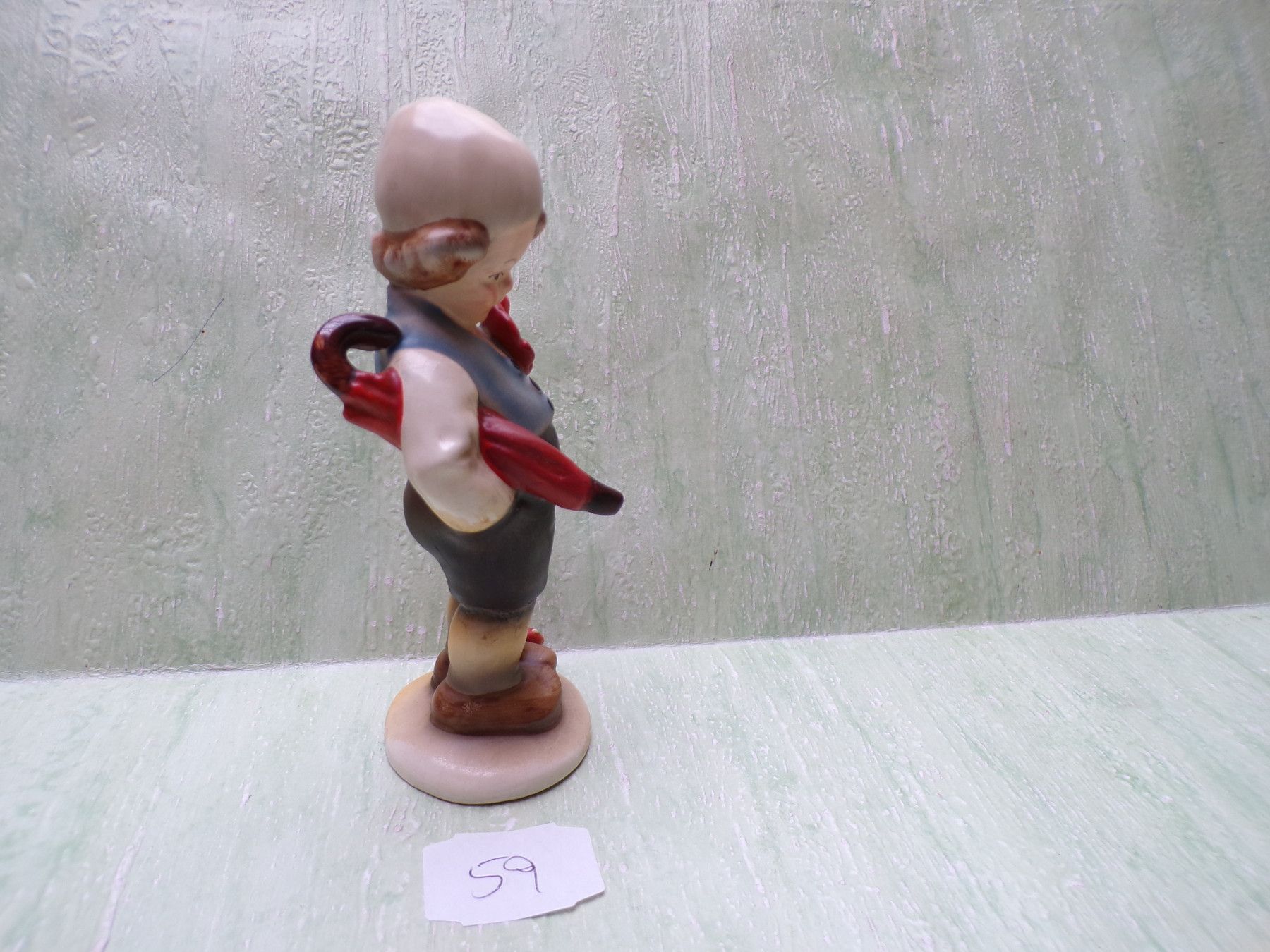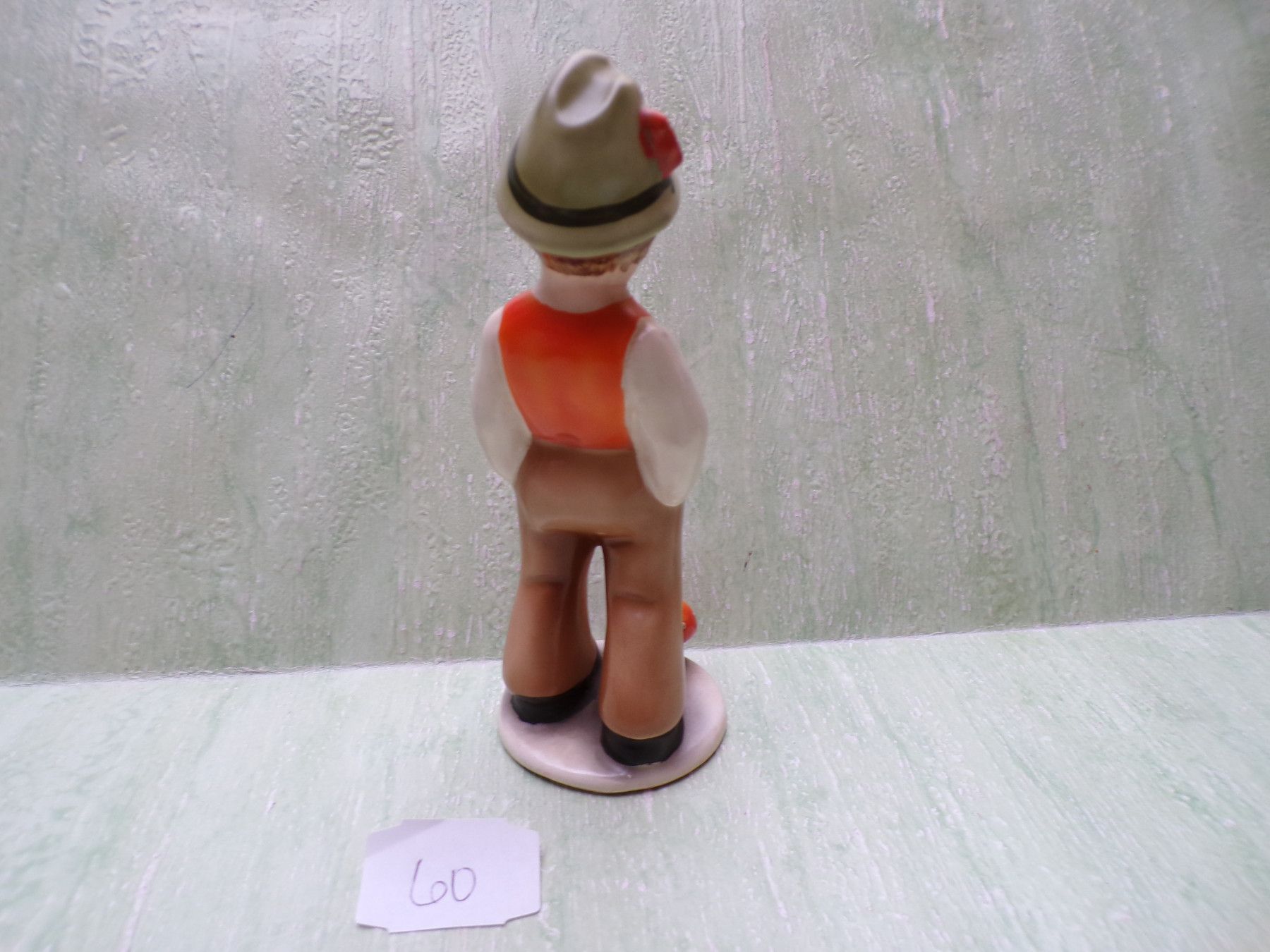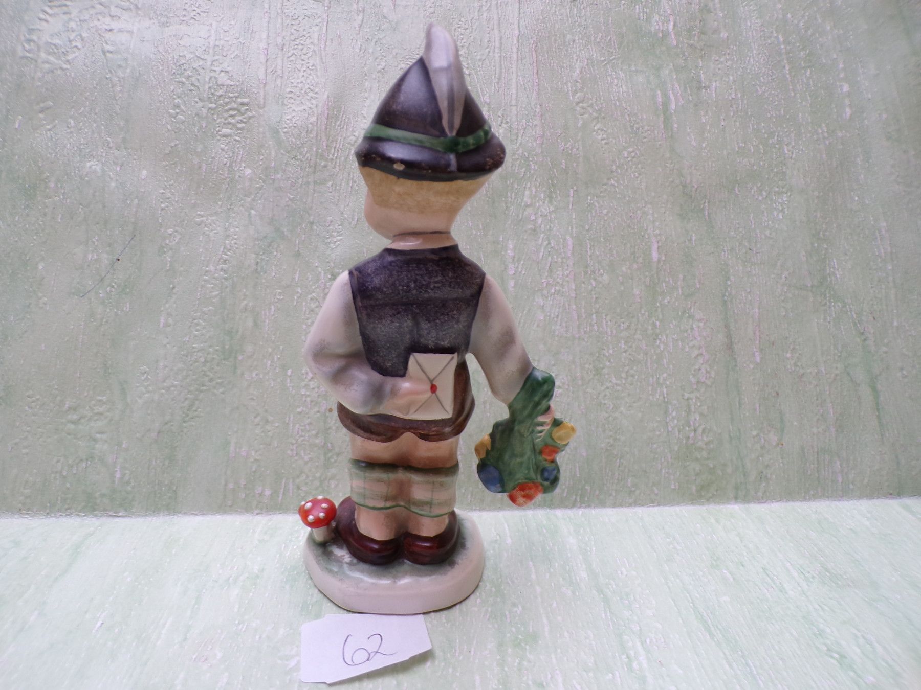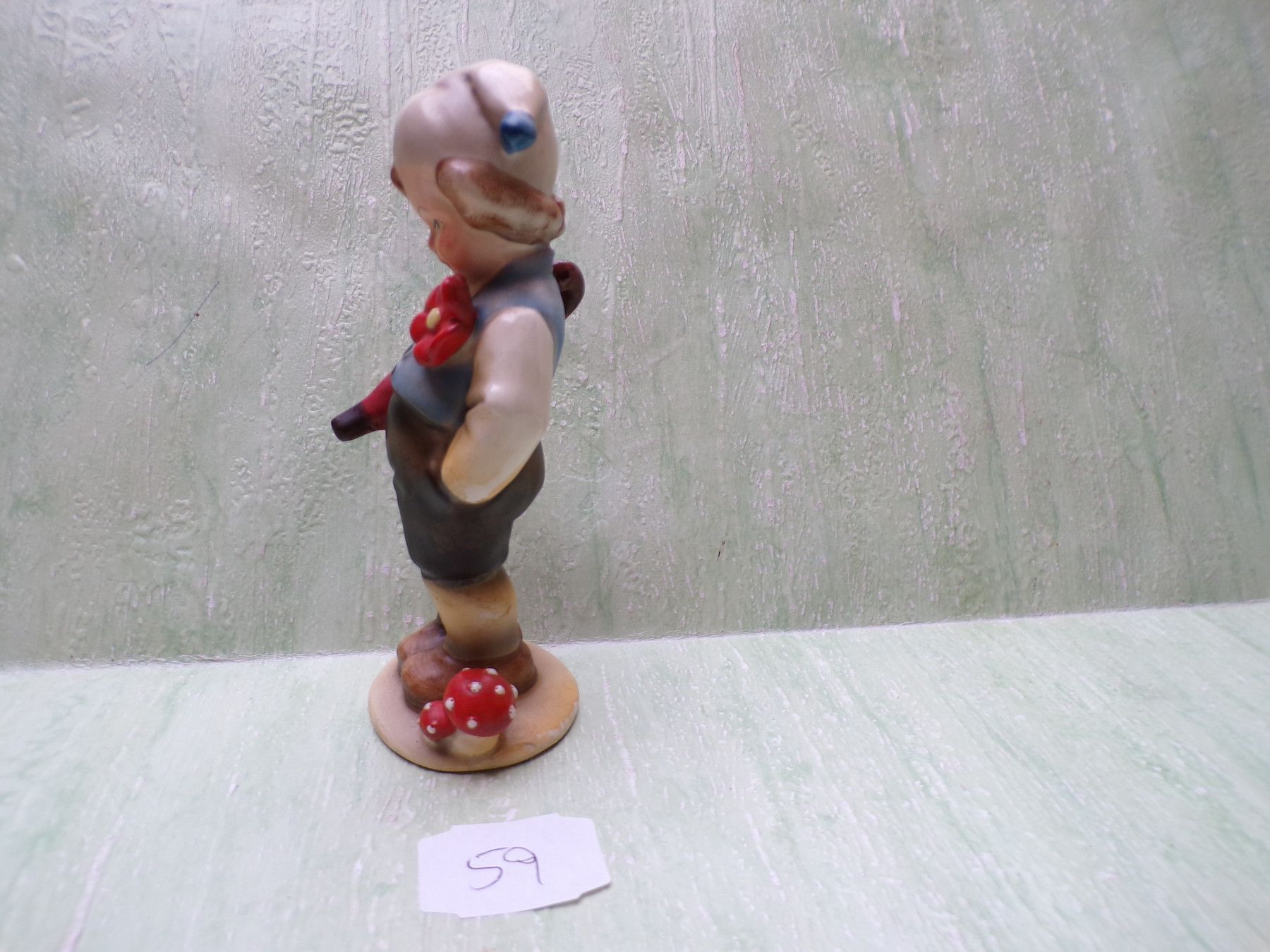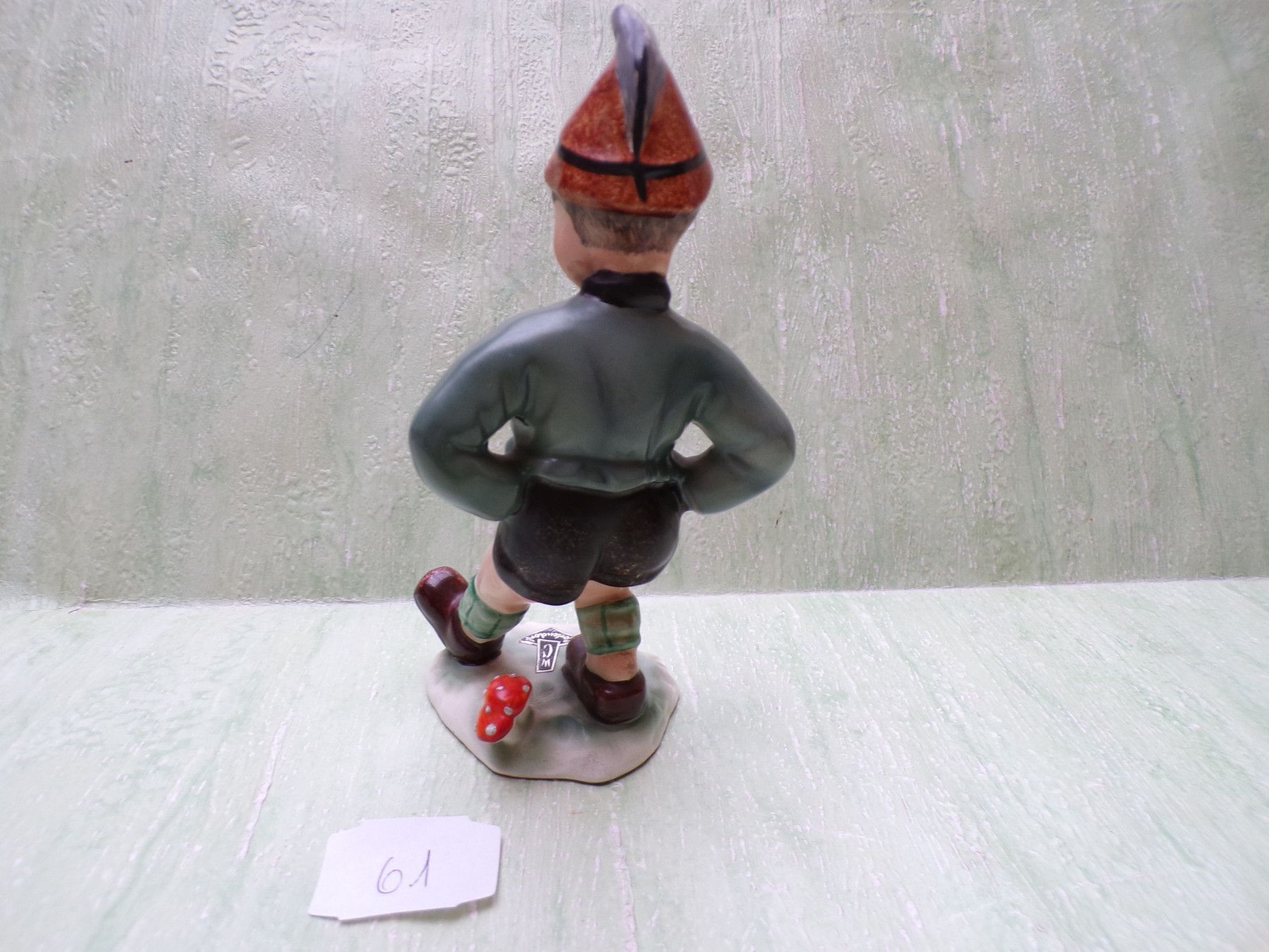 59: mit Regenschirm ca 13cm, 60: "gemütlich" ca 14cm, 61: Wanderbub ca 15cm, 62: heimlicher Brief Chip am Hut ca 15cm