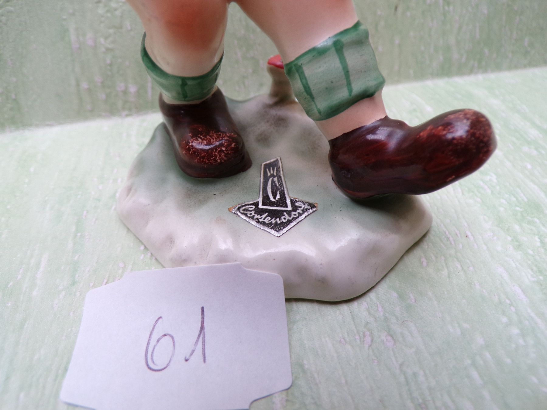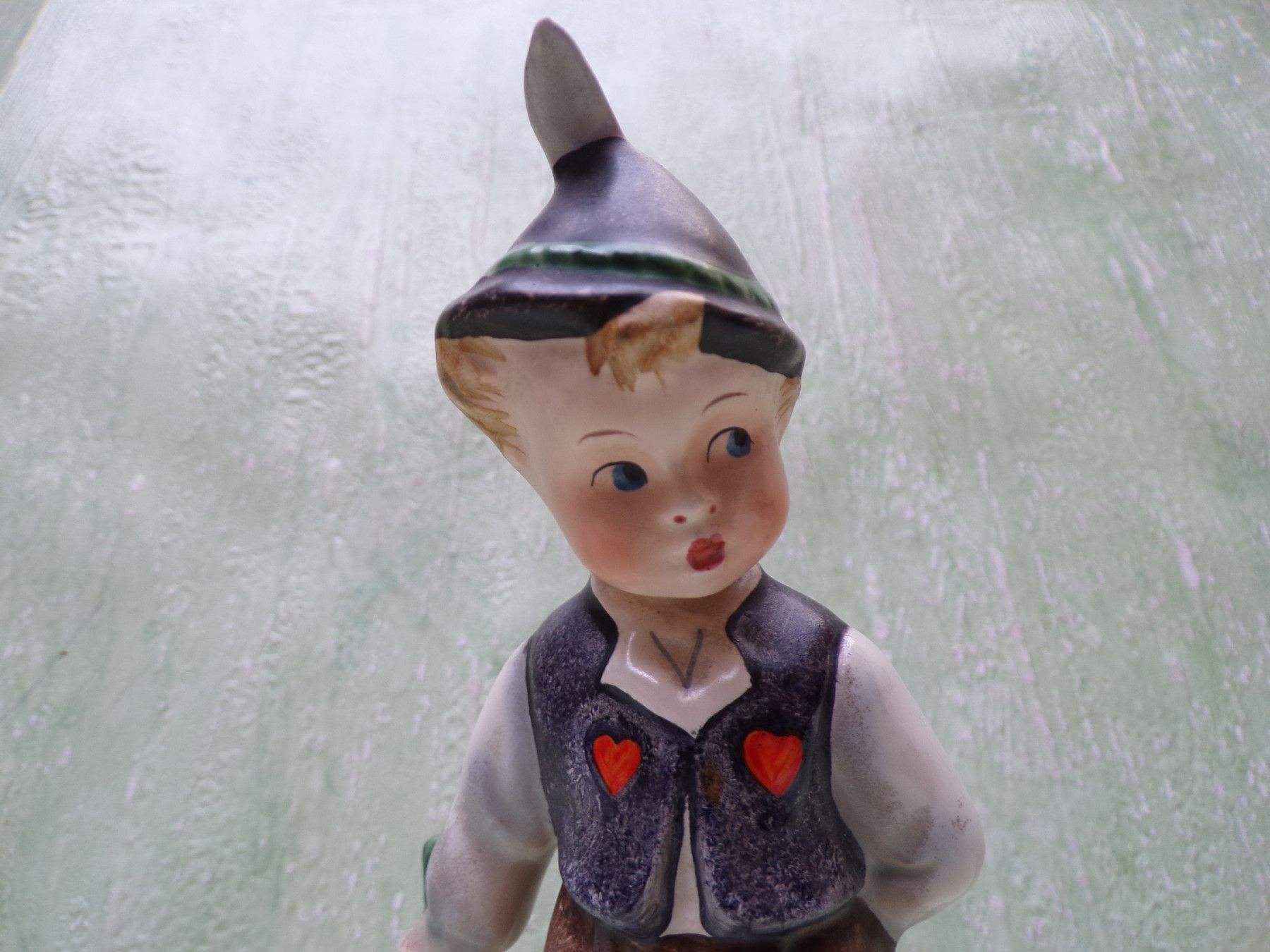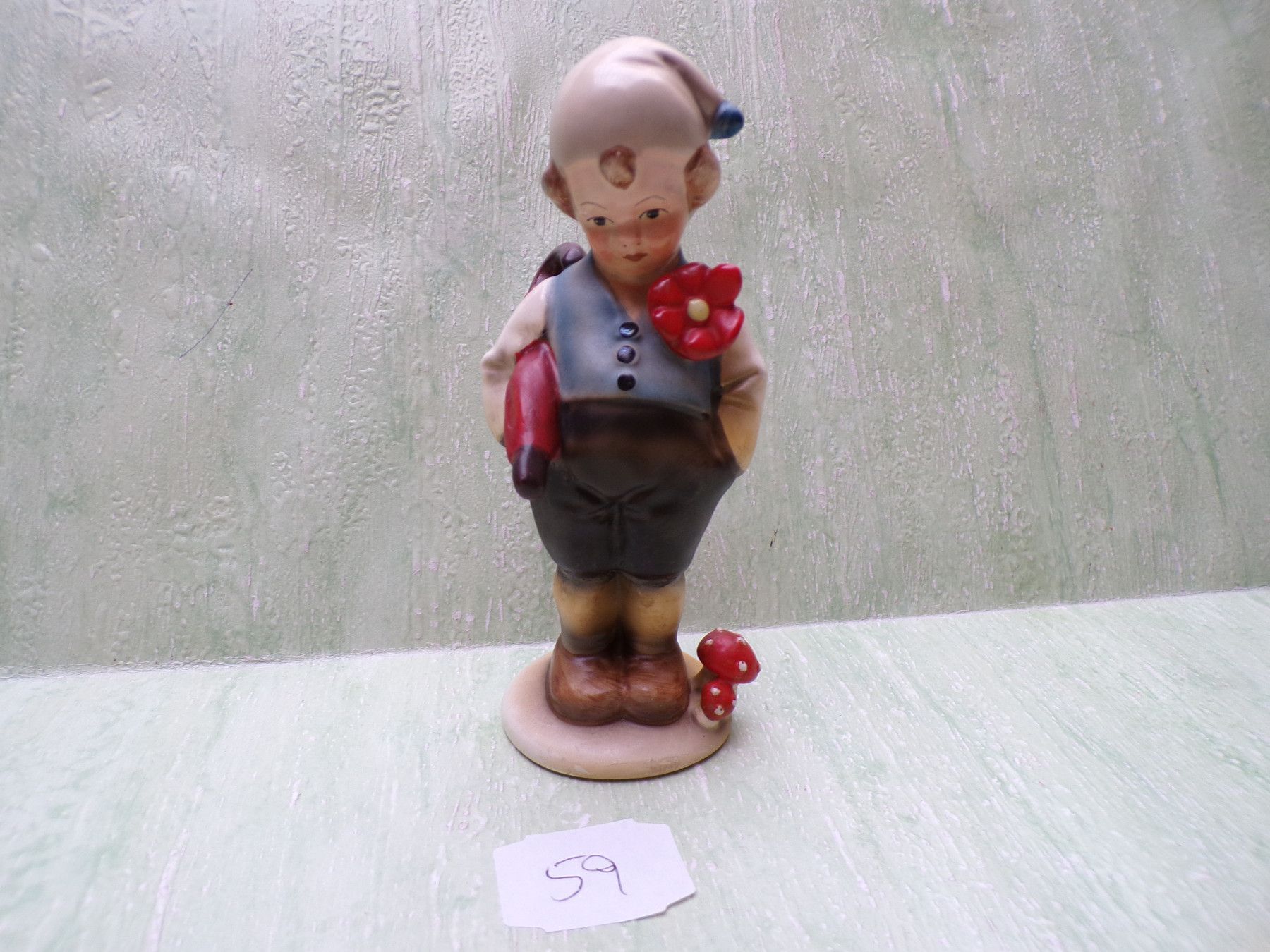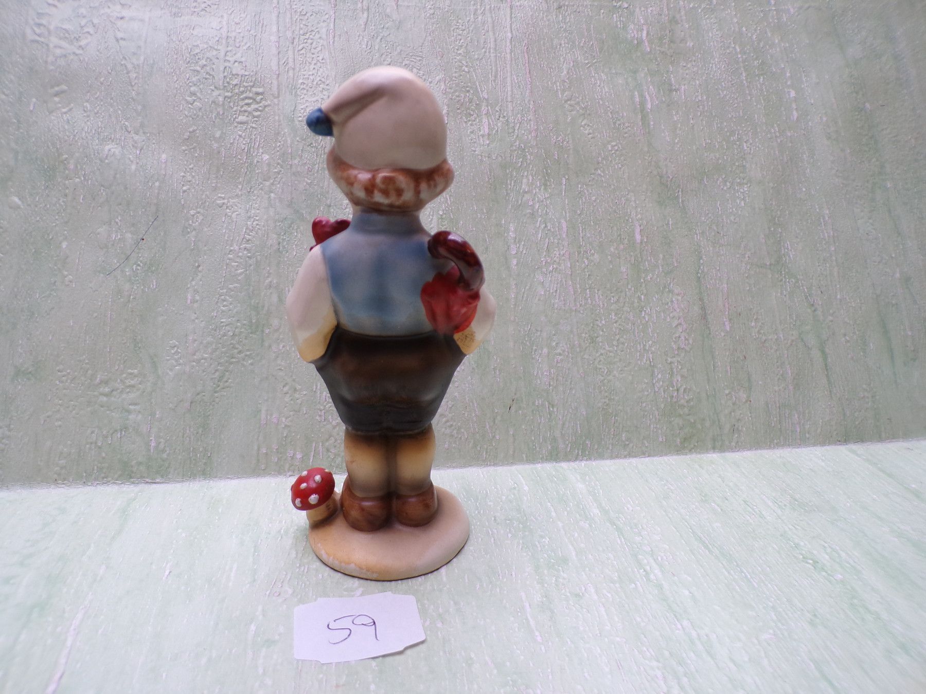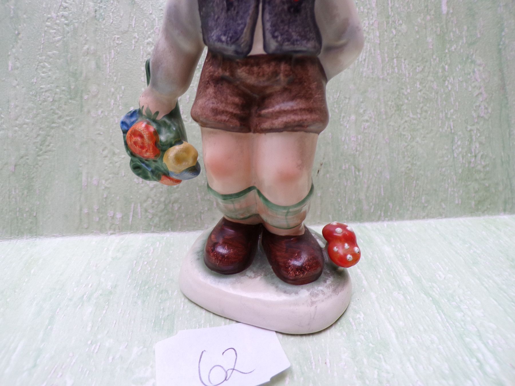 59: mit Regenschirm ca 13cm, 60: "gemütlich" ca 14cm, 61: Wanderbub ca 15cm, 62: heimlicher Brief Chip am Hut ca 15cm