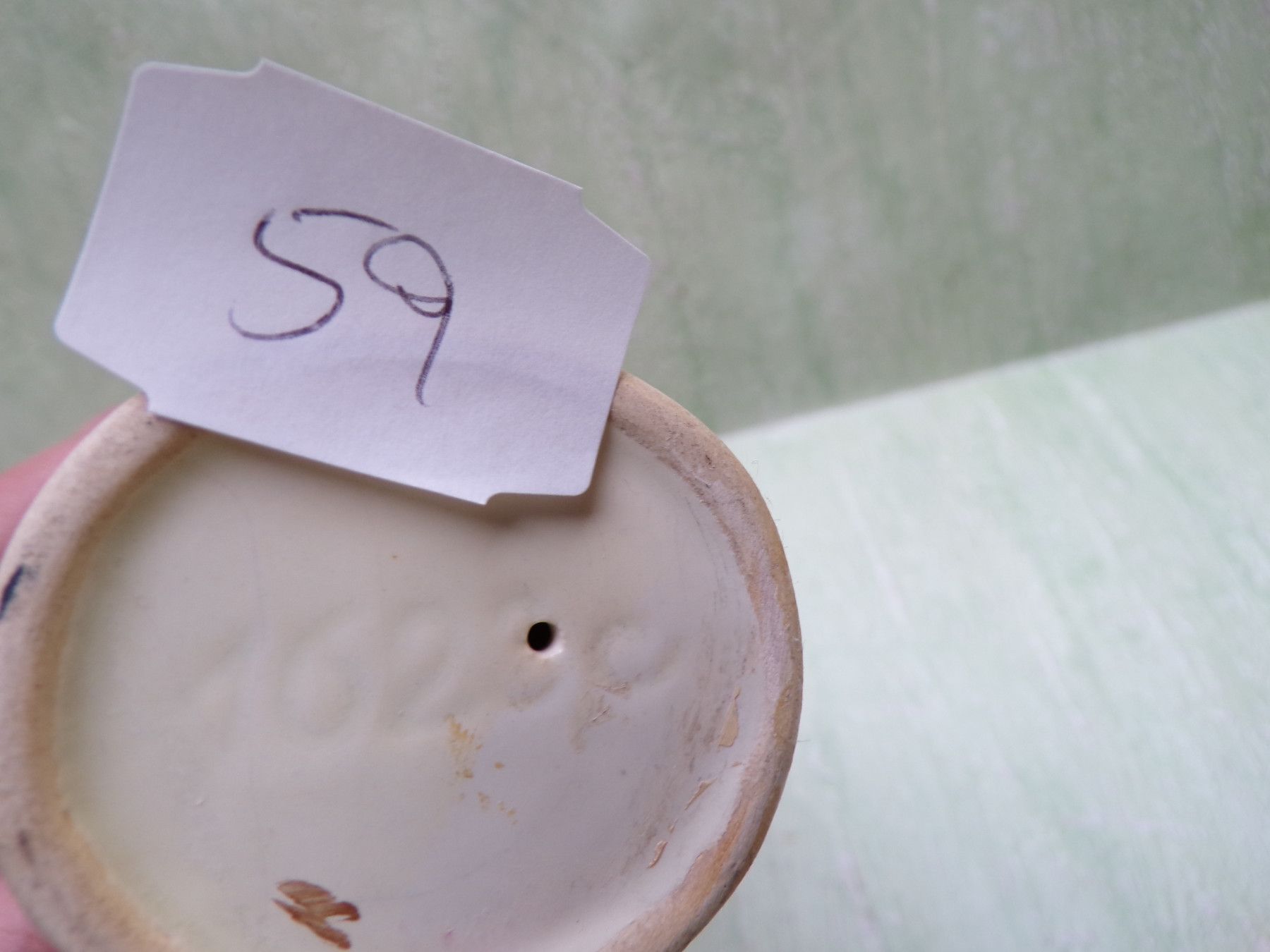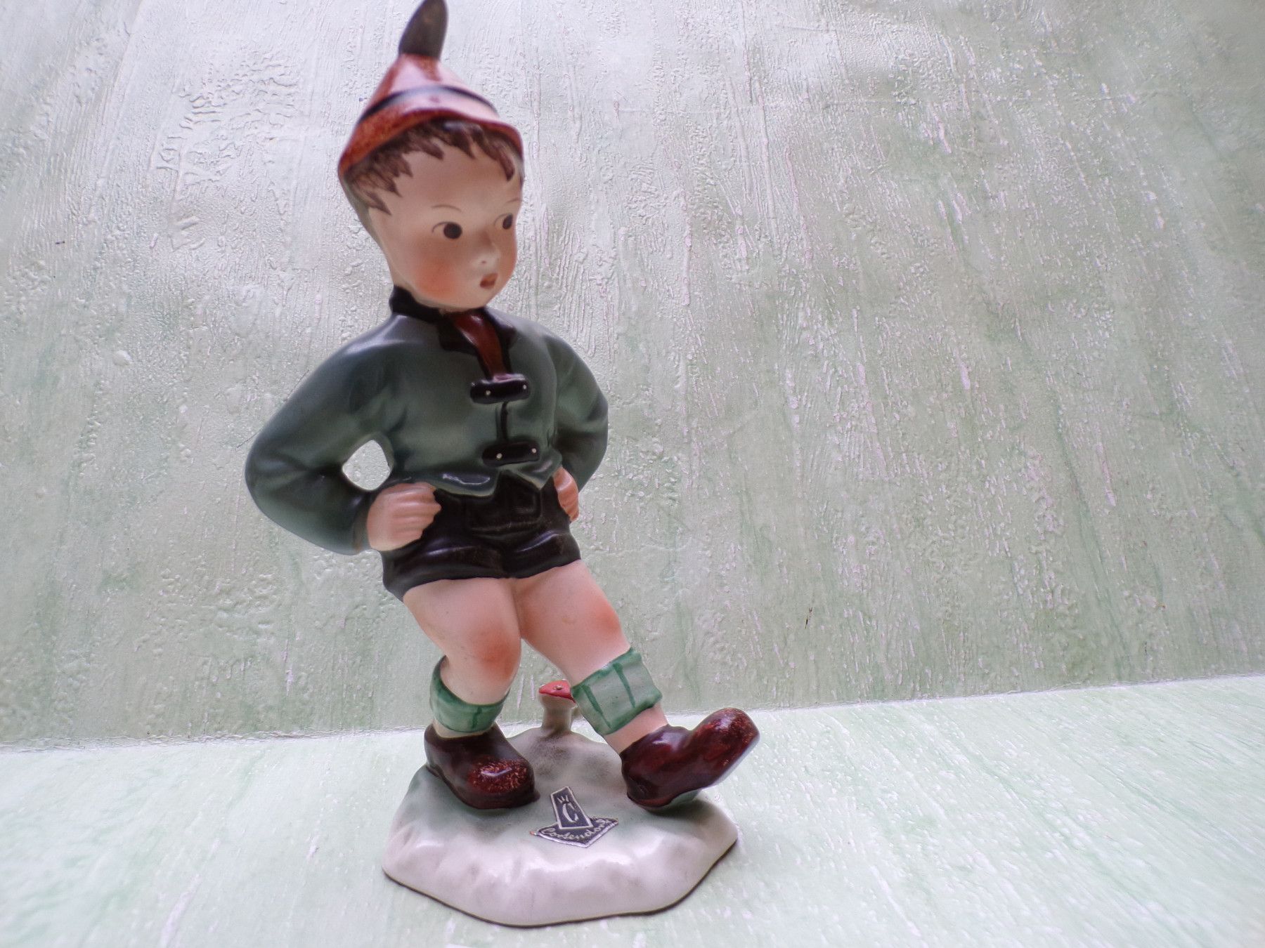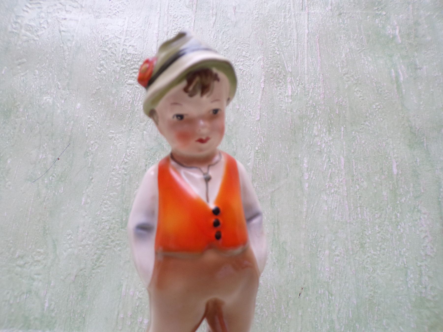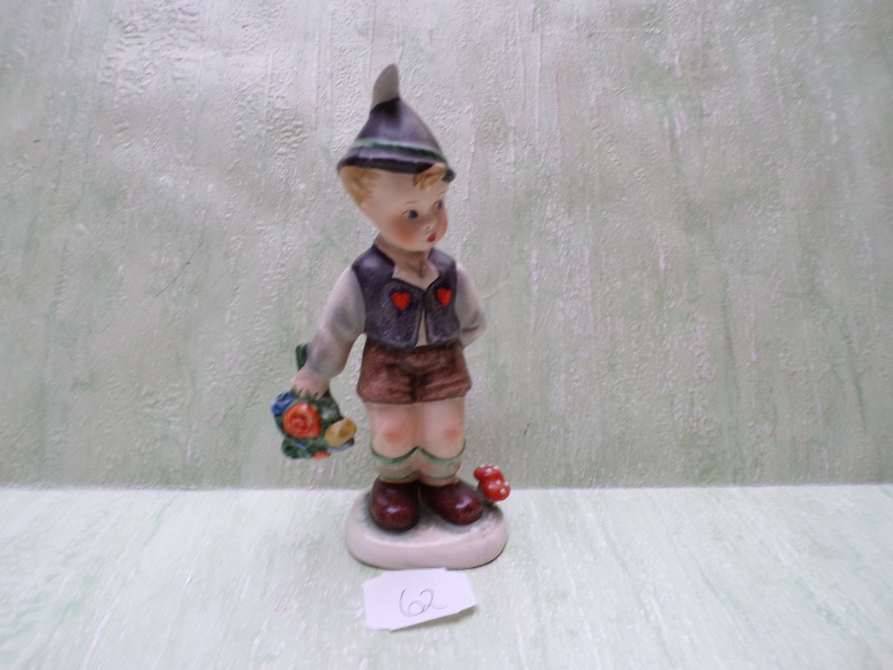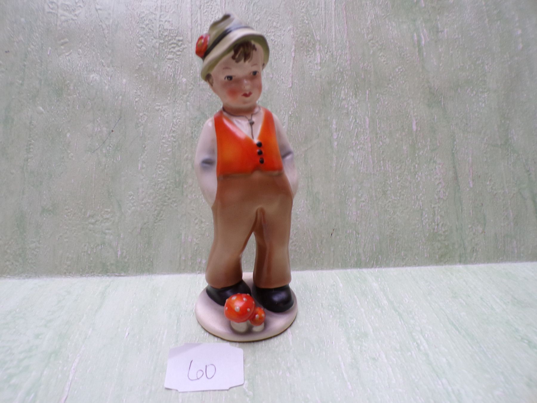 59: mit Regenschirm ca 13cm, 60: "gemütlich" ca 14cm, 61: Wanderbub ca 15cm, 62: heimlicher Brief Chip am Hut ca 15cm