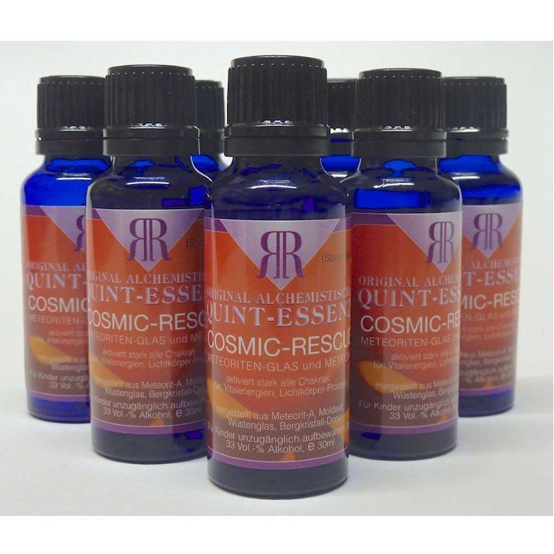COSMIC-Rescue 30ml Diese außergewöhnliche Rescue-Mischung aus Meteorit-A, Moldavit, Lybisches Wüstenglas und Bergkristall-Dorje hat ein Energiepotential von über 40.000 Bovis (=Messgrenze). Bei der Einnahme aktiviert sie alle Chakras von 7000 auf über 40 000 Bovis. Die Besonderheit ist, dass tatsächlich alle Chakras gleichmäßig so stark aktiviert werden.