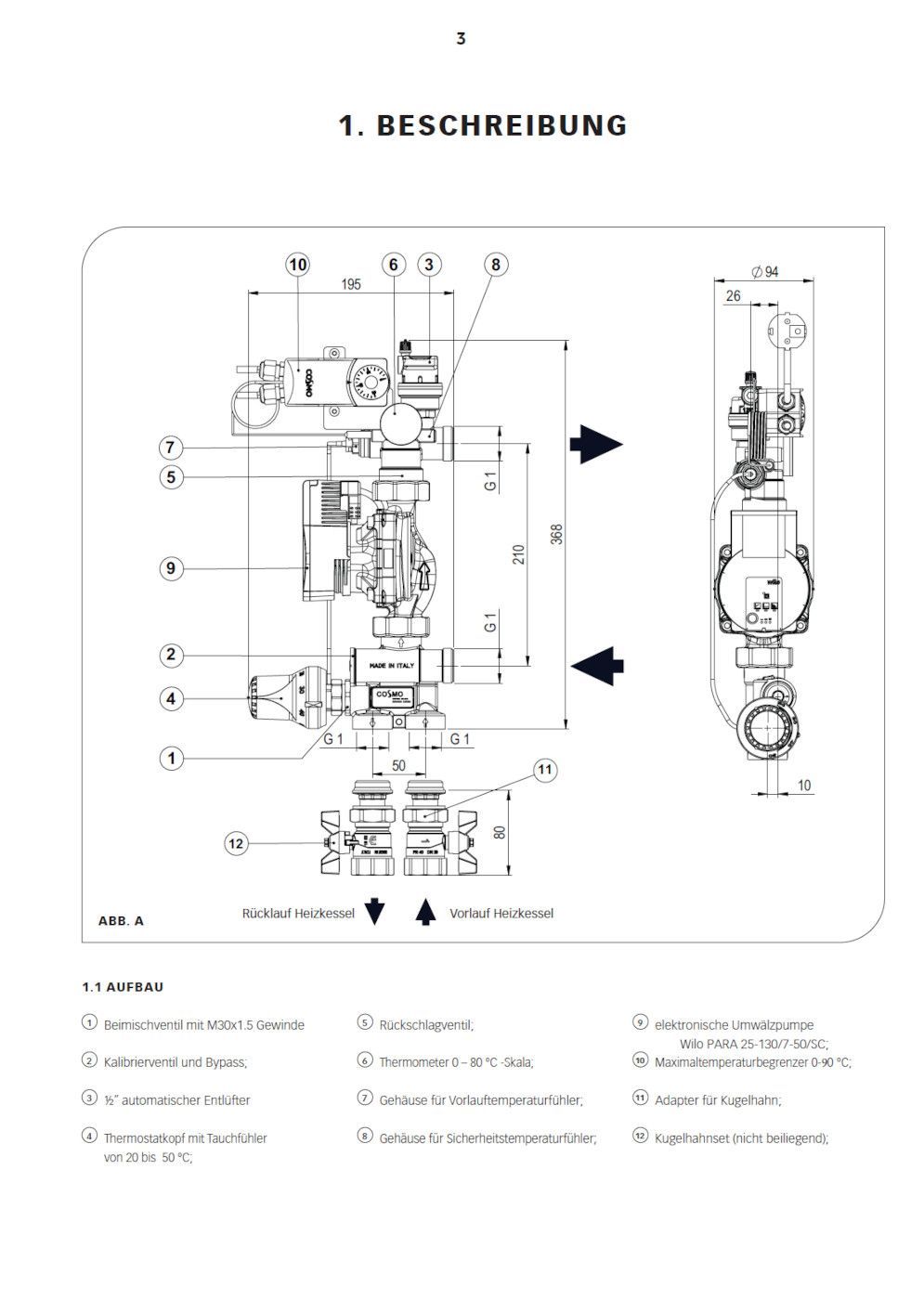Cosmo Festwert-Regelstation für Edelstahl-Verteiler mit HE-Pumpe Para 25/7
