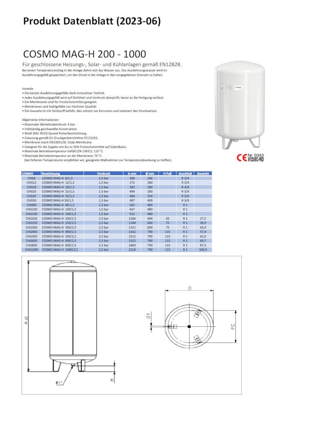 Cosmo Membran Druck Ausdehnungsgefäß Heizung 25 liter statt Reflex