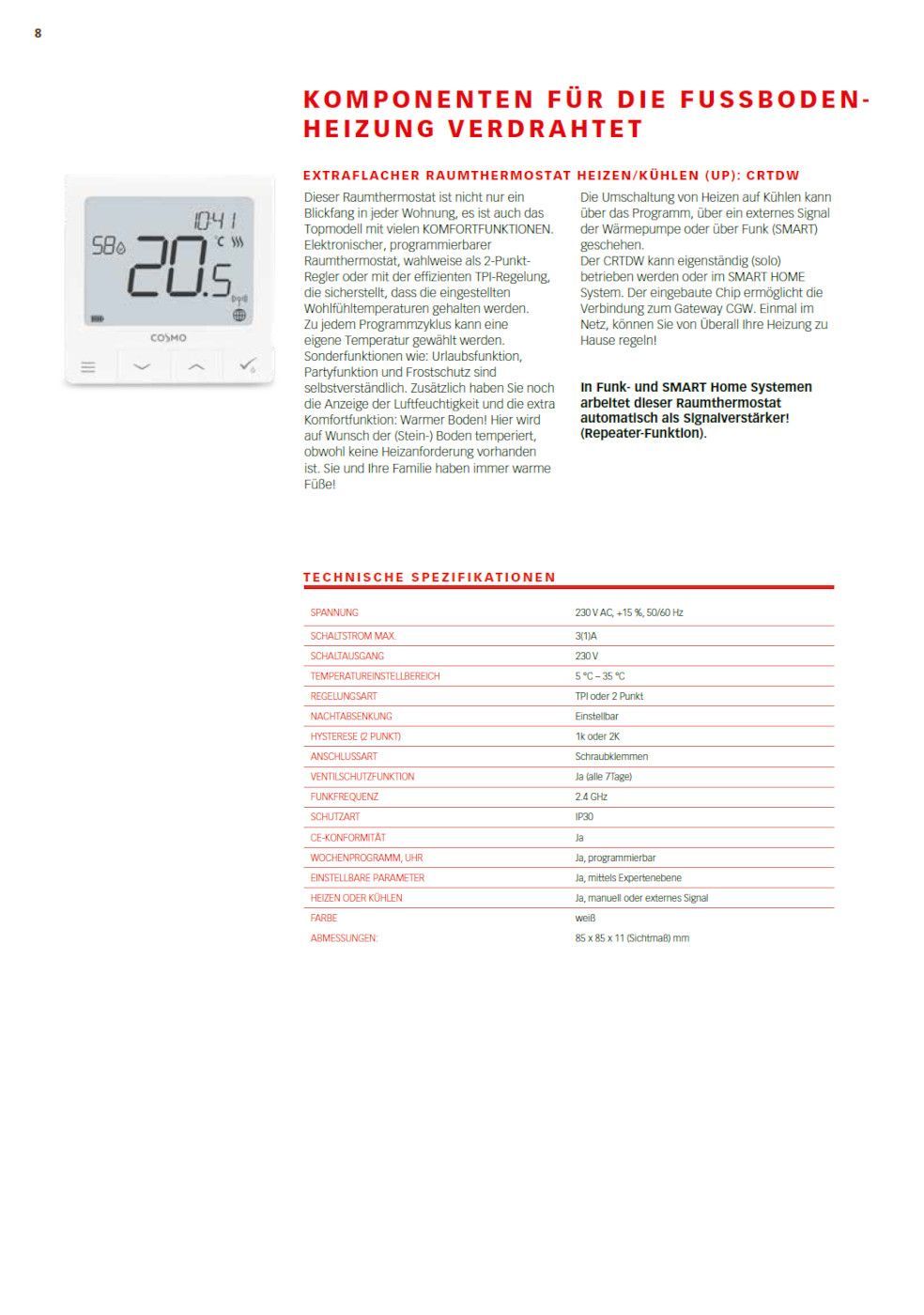 Cosmo Superflacher Raumthermostat 230V UP Digital-programmierbar