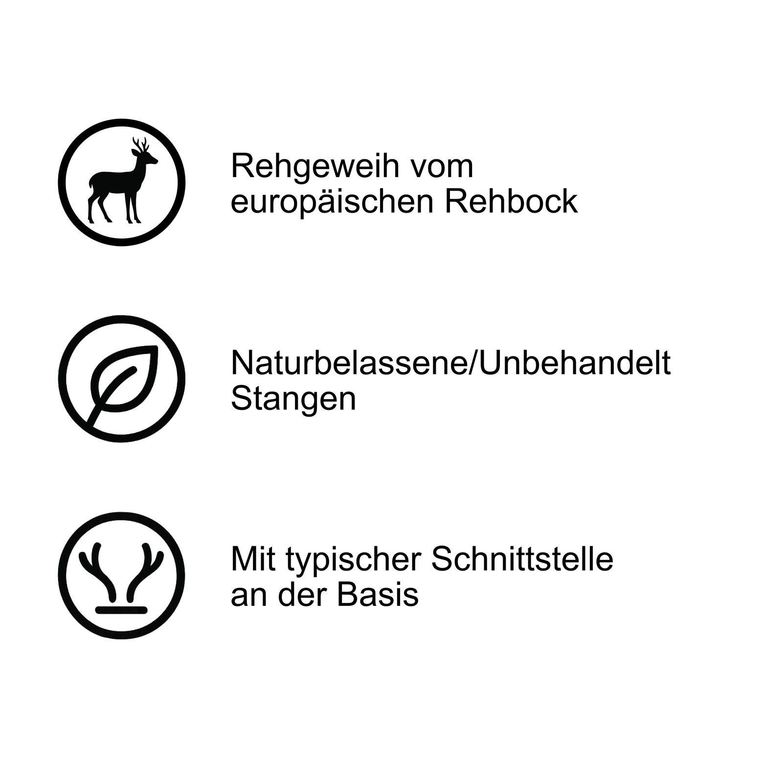 Cosplay Geweih vom Rehbock, 15–19 cm lang und ohne Rose zugeschnitten. Perfekt für aufwendige Kostüme, LARP, Cosplay, Mittelalter-, Elfen- oder Wikinger-Projekte. Durch den glatten Schnitt am Ansatz lässt sich das Geweih leicht befestigen, bemalen oder weiterverarbeiten. Jedes Stück ist ein echtes N