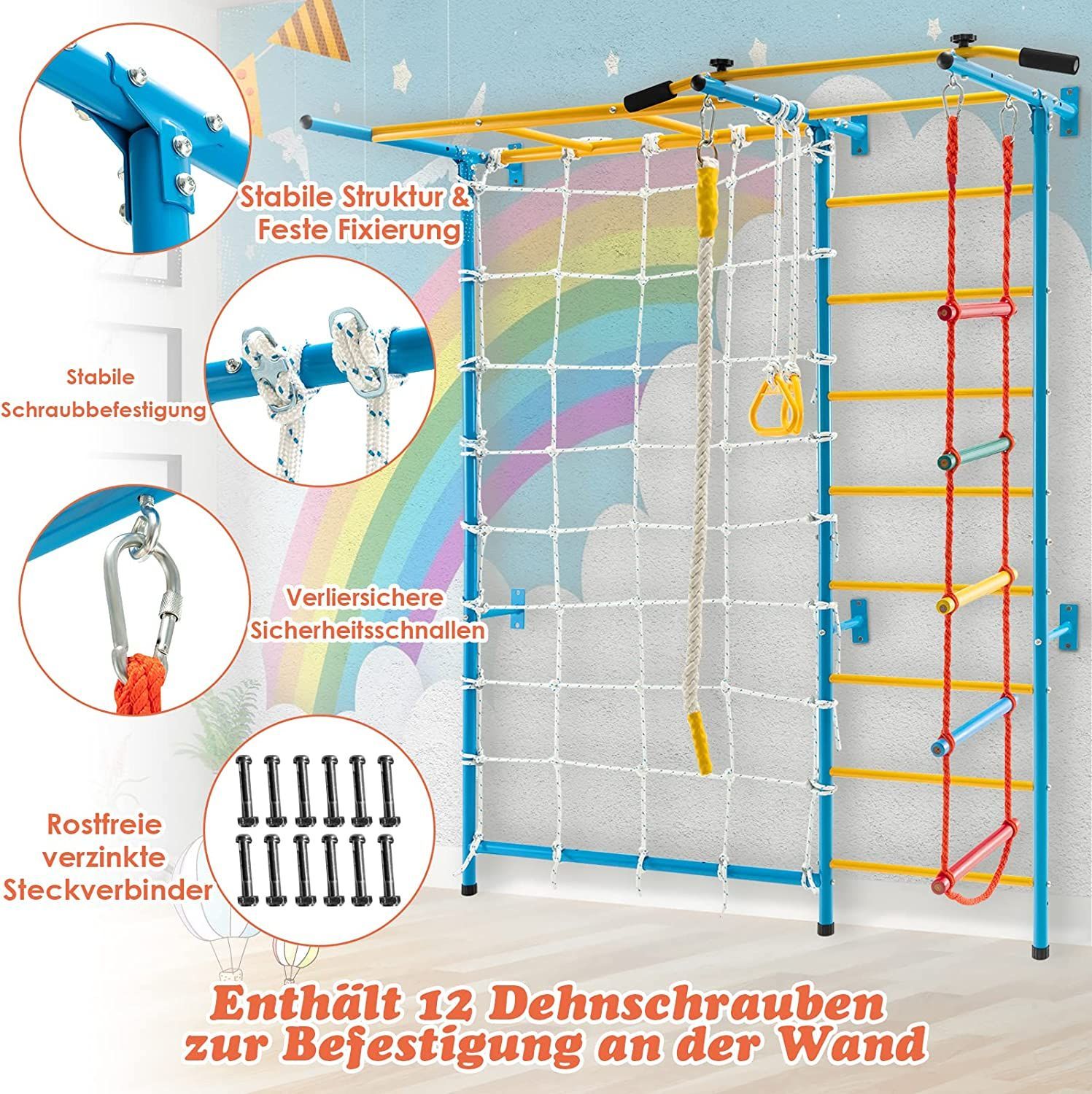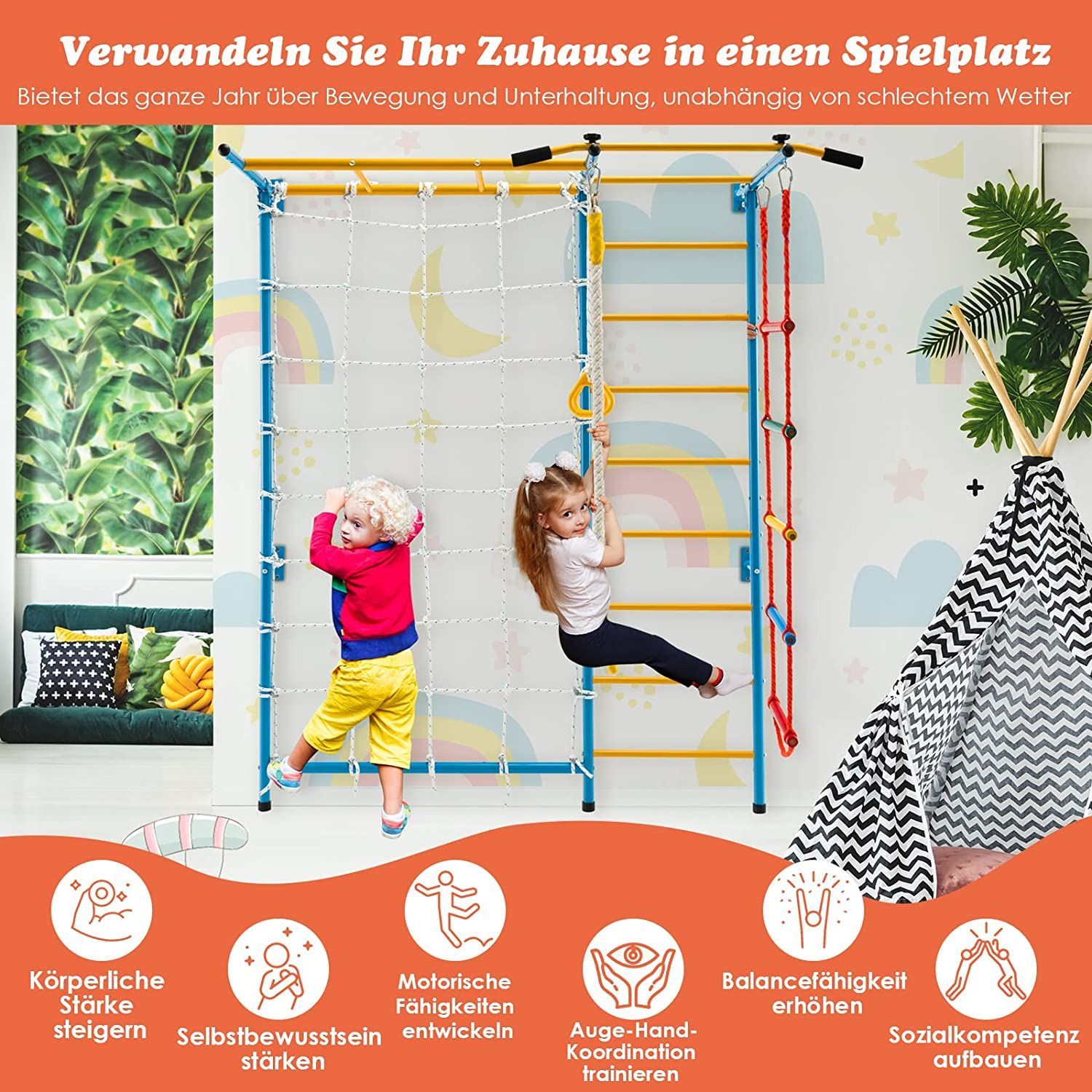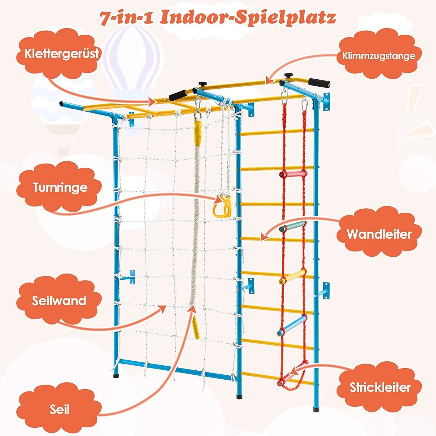 Costway 7in1 Kinder Kletterwand mit Netz, Sprossenwand, Turnwand Gymnastikgerät