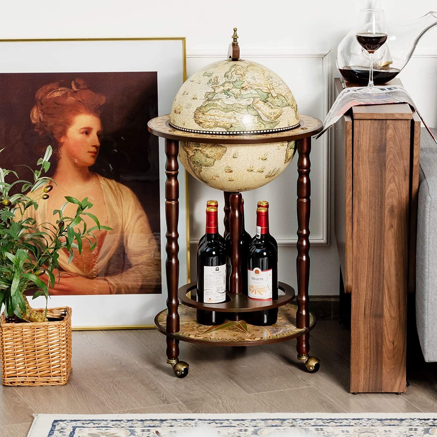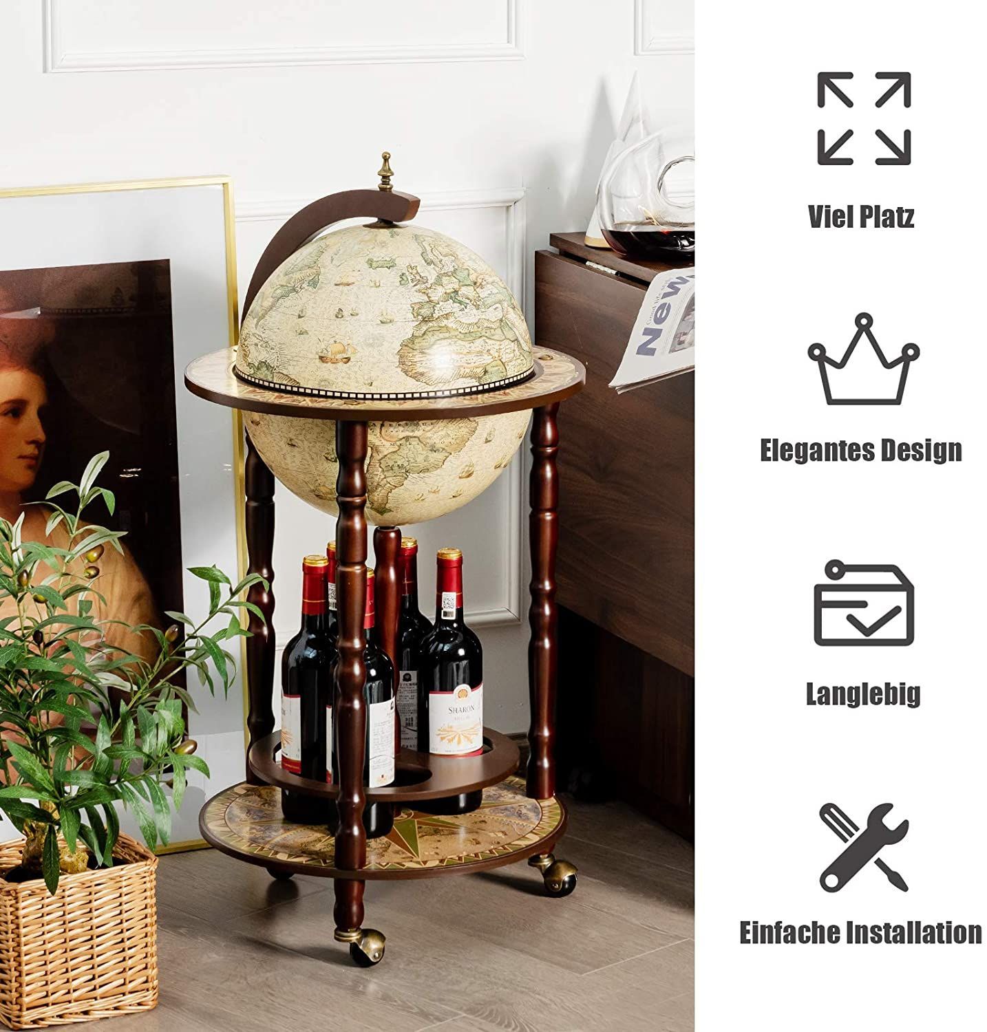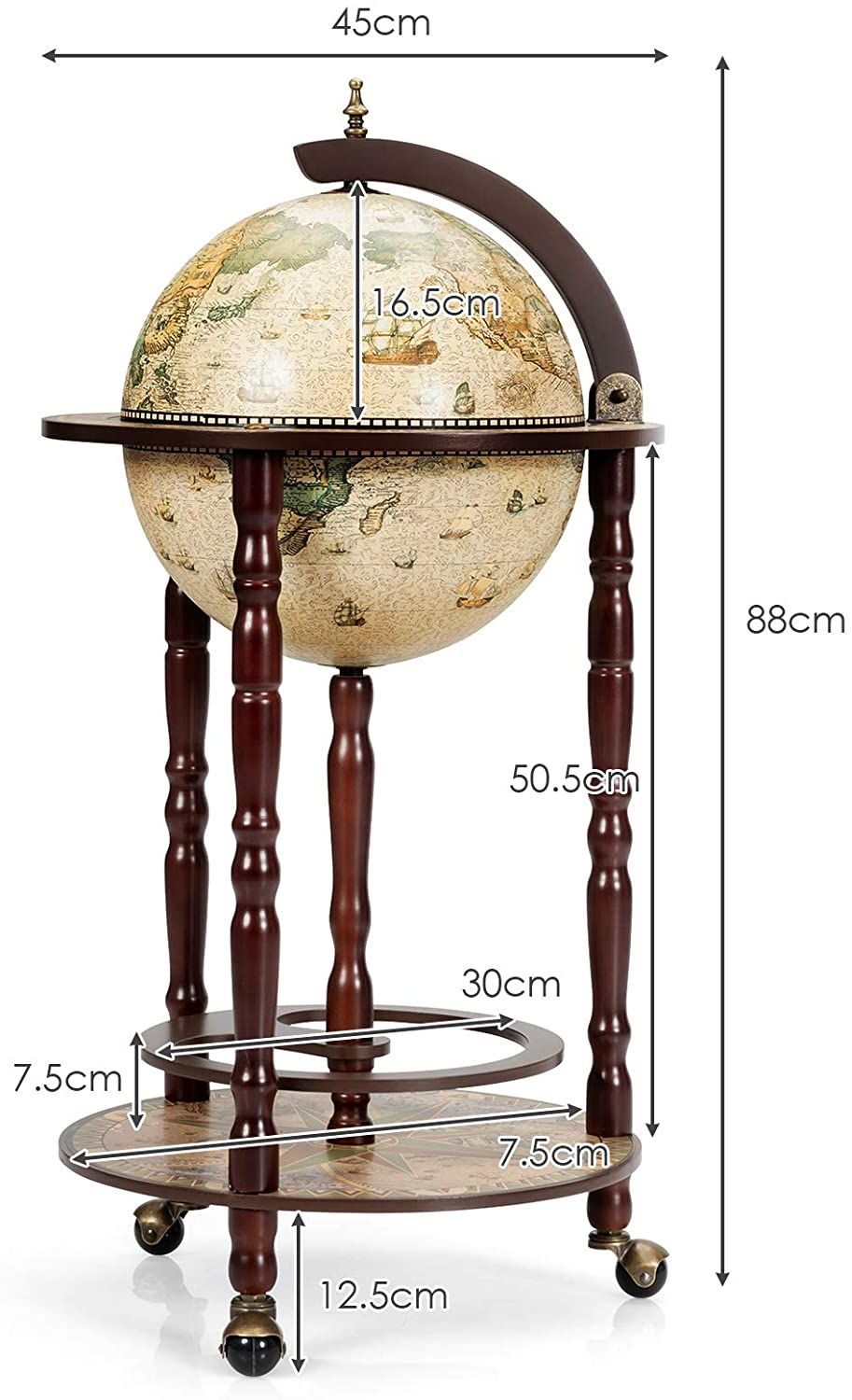 Costway Globusbar Barwagen Globus Bar Hausbar Servierwagen Weinregal mit Rollen