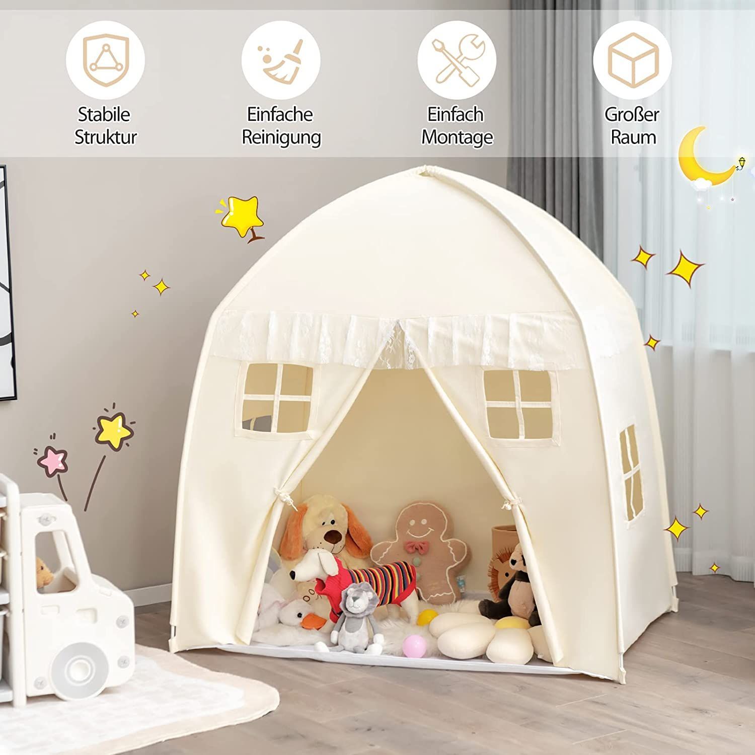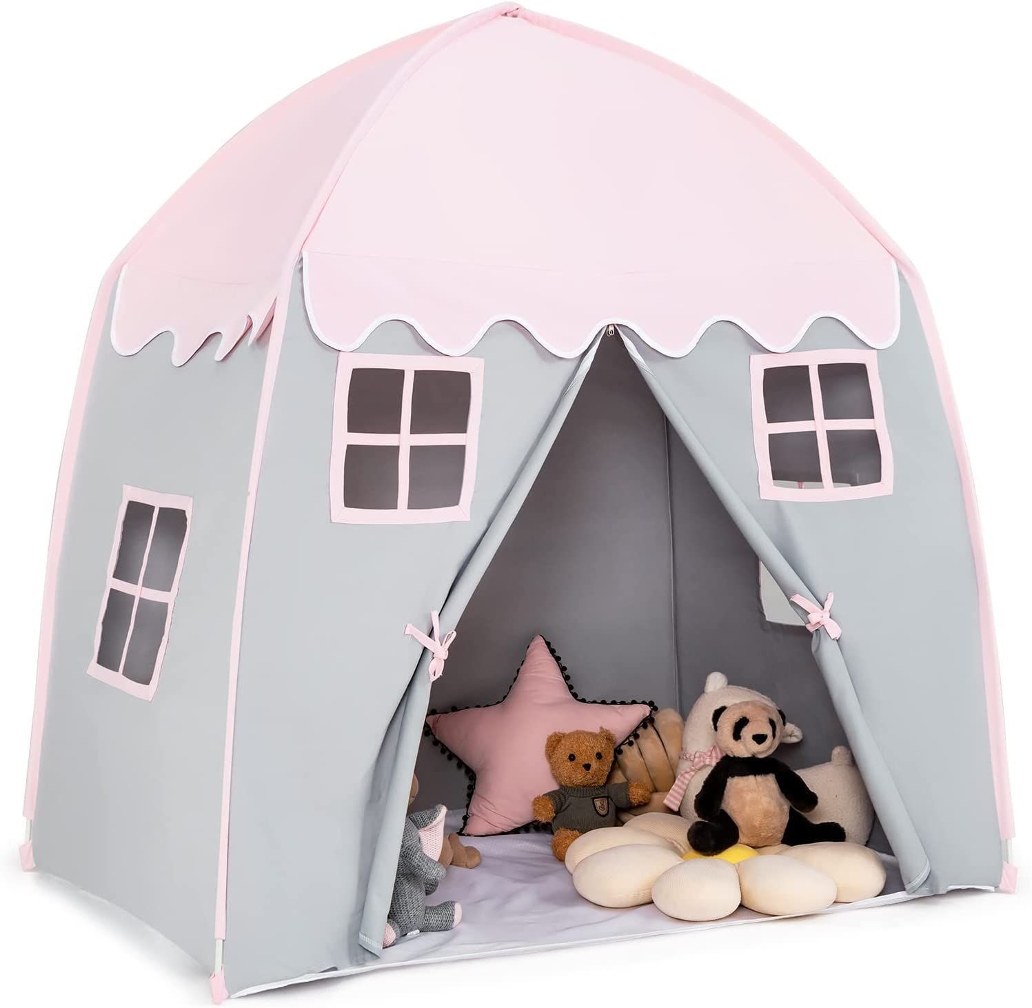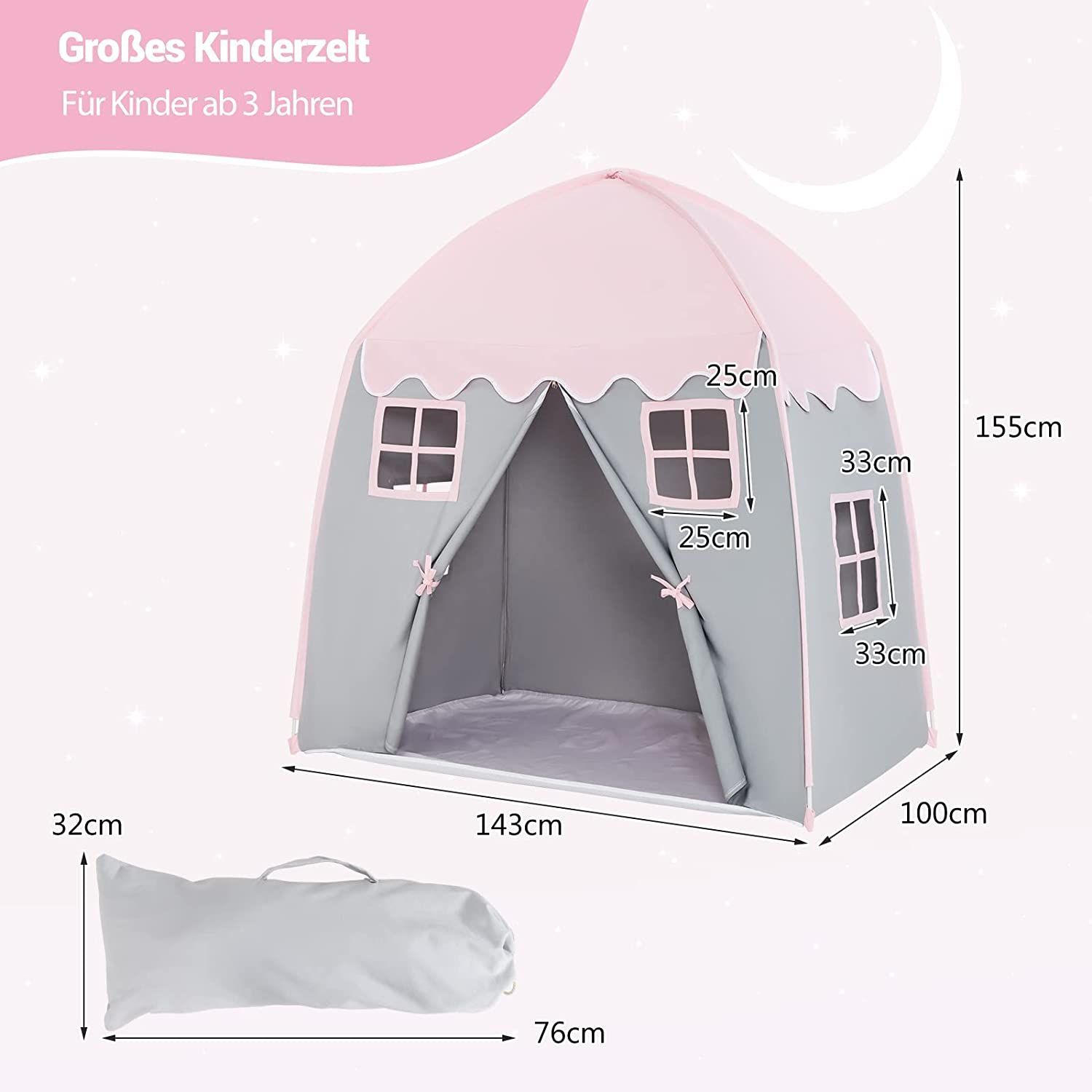 Costway Kinderspielhaus mit Fenstern , Prinzessin Prinzess Kinderzelt