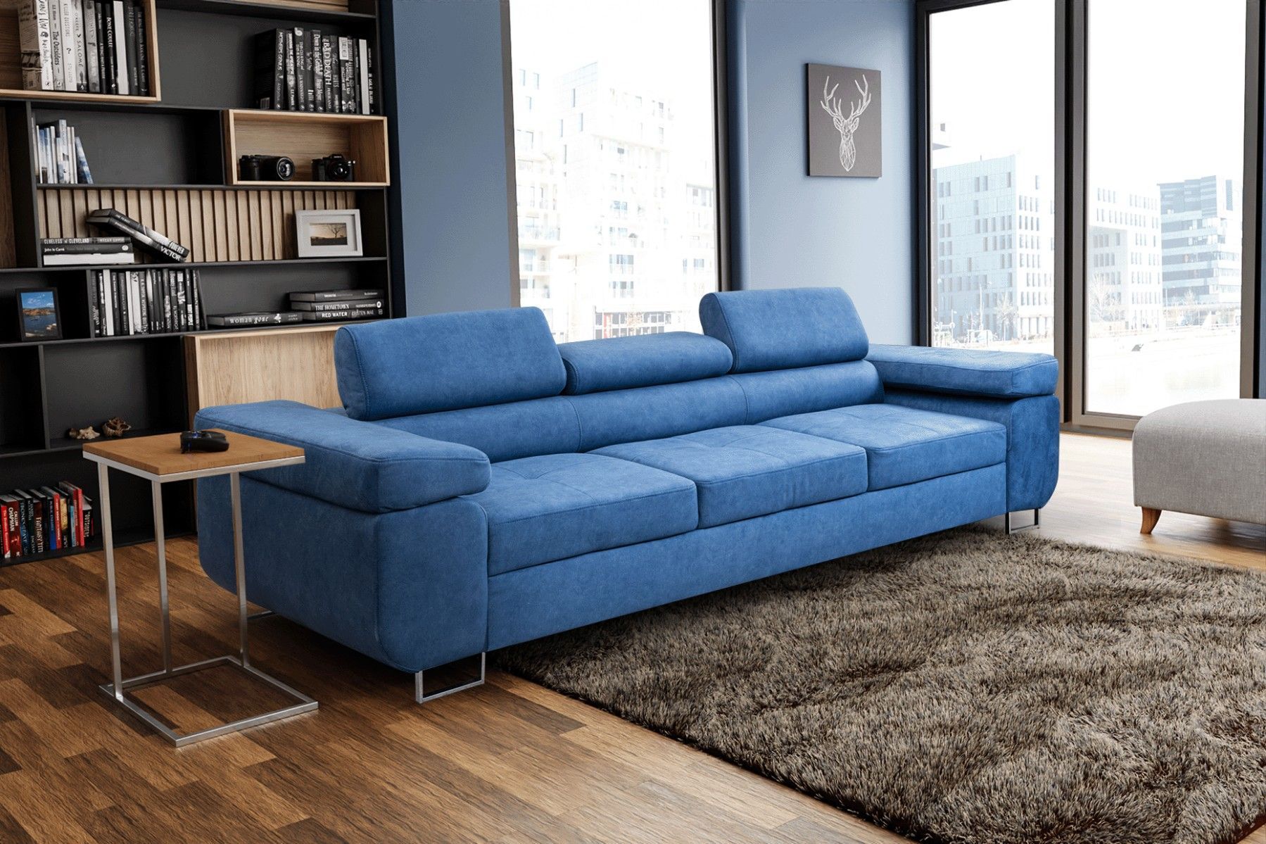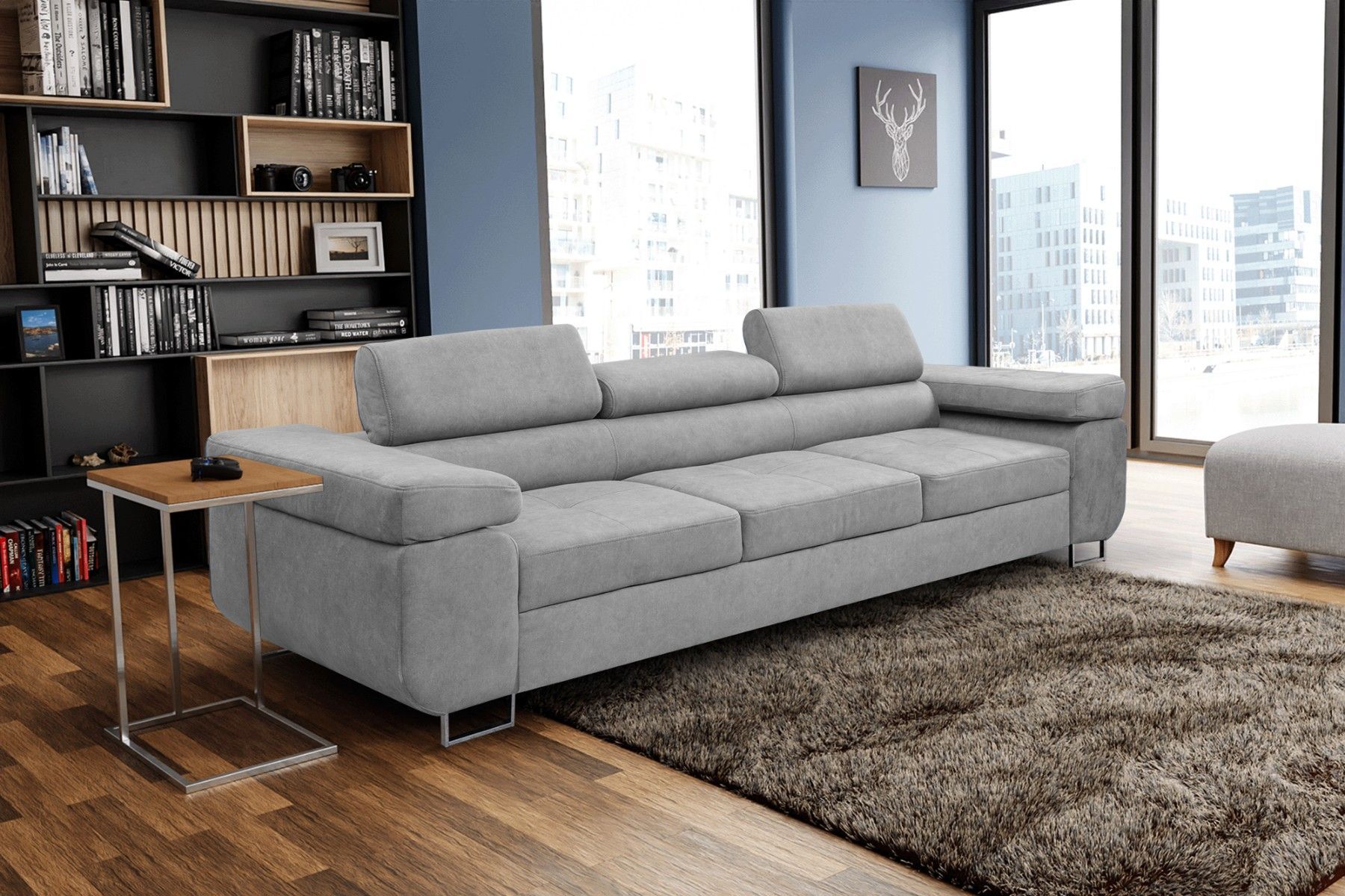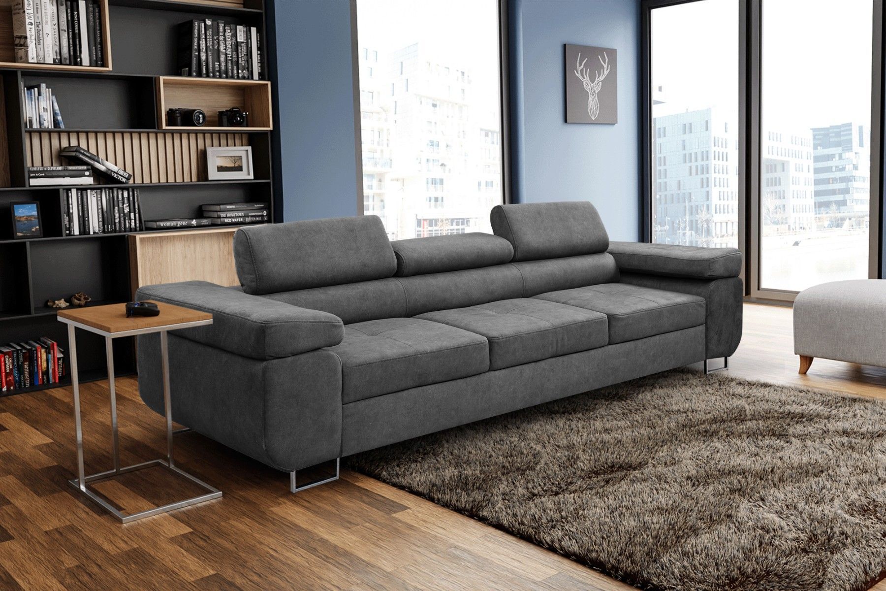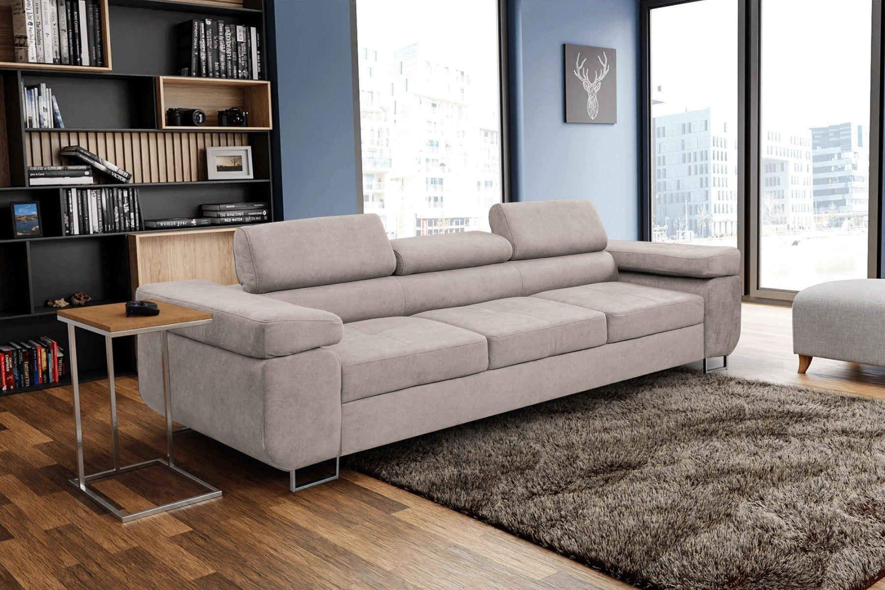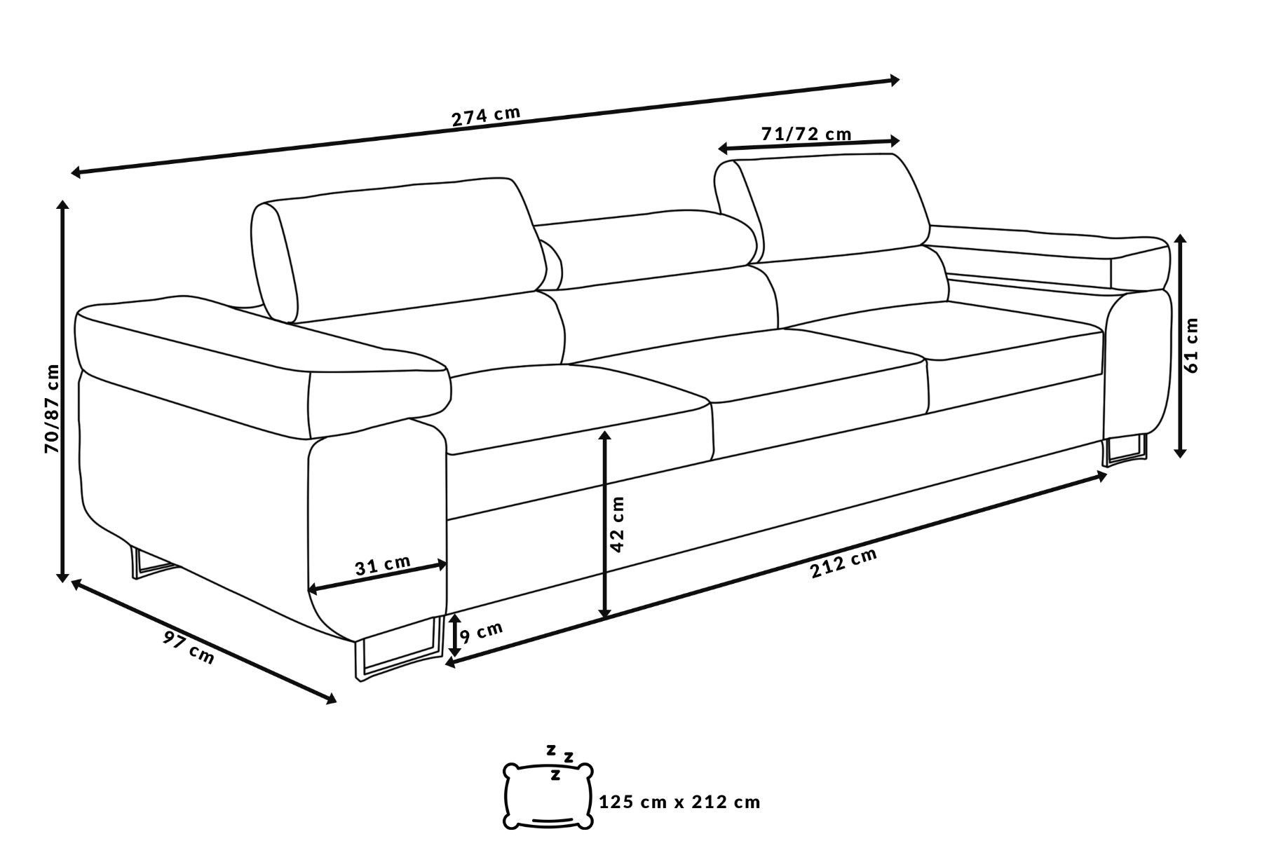 Couch Marlene mit verstellbaren Kopfstützen 274 x 97 cm, Schlaffunktion 3-Sitzer
