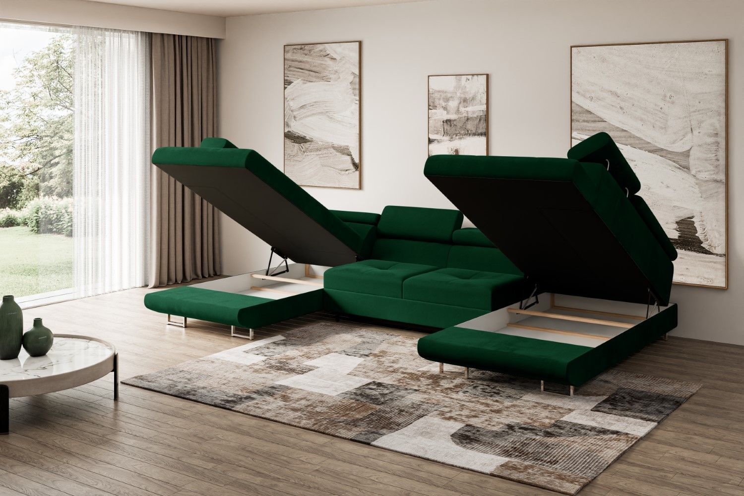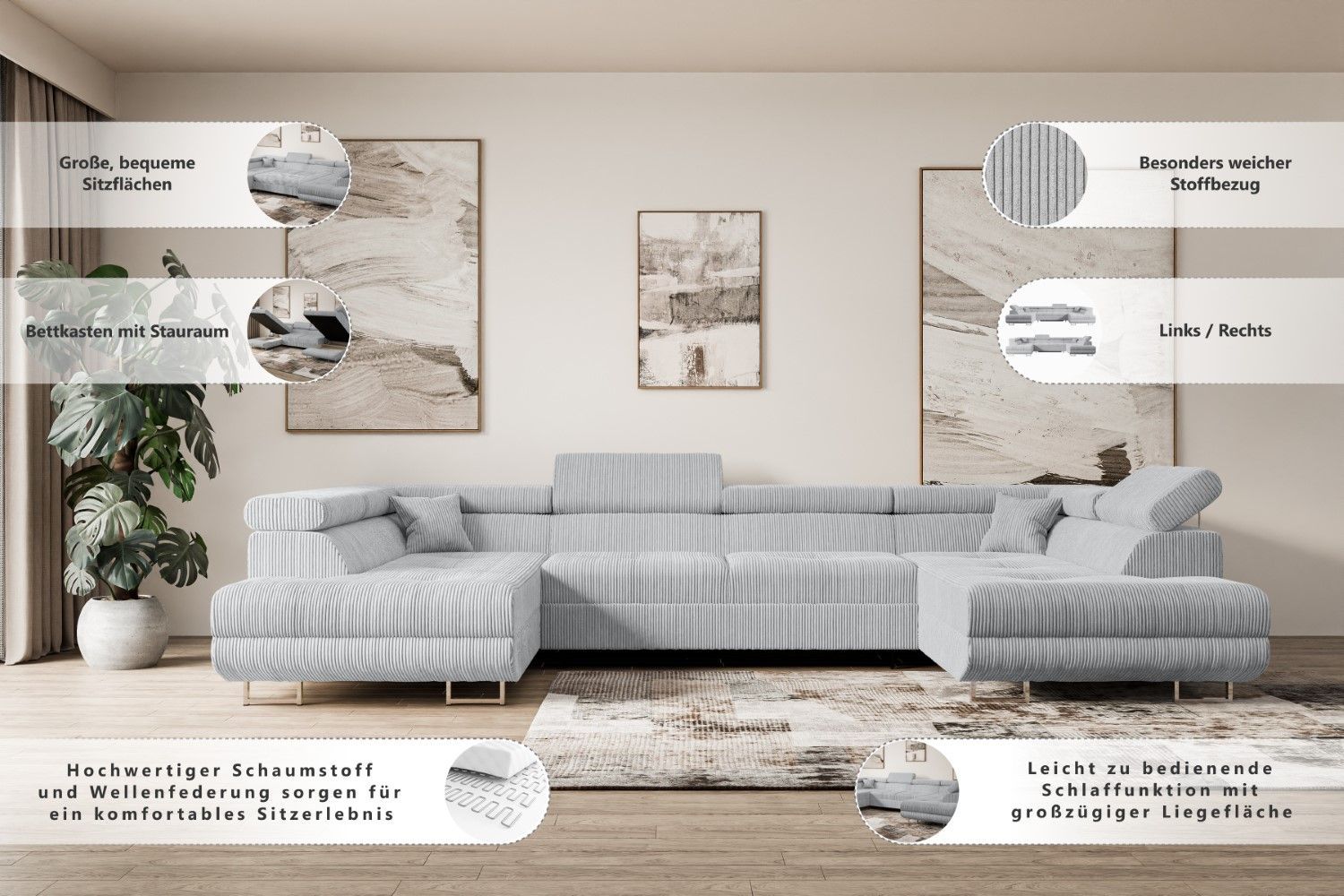 FEDVE Ecksofa Sekwana U Form Sofa mit Schlaffunktion Bettkästen Couch Sofagarnitur