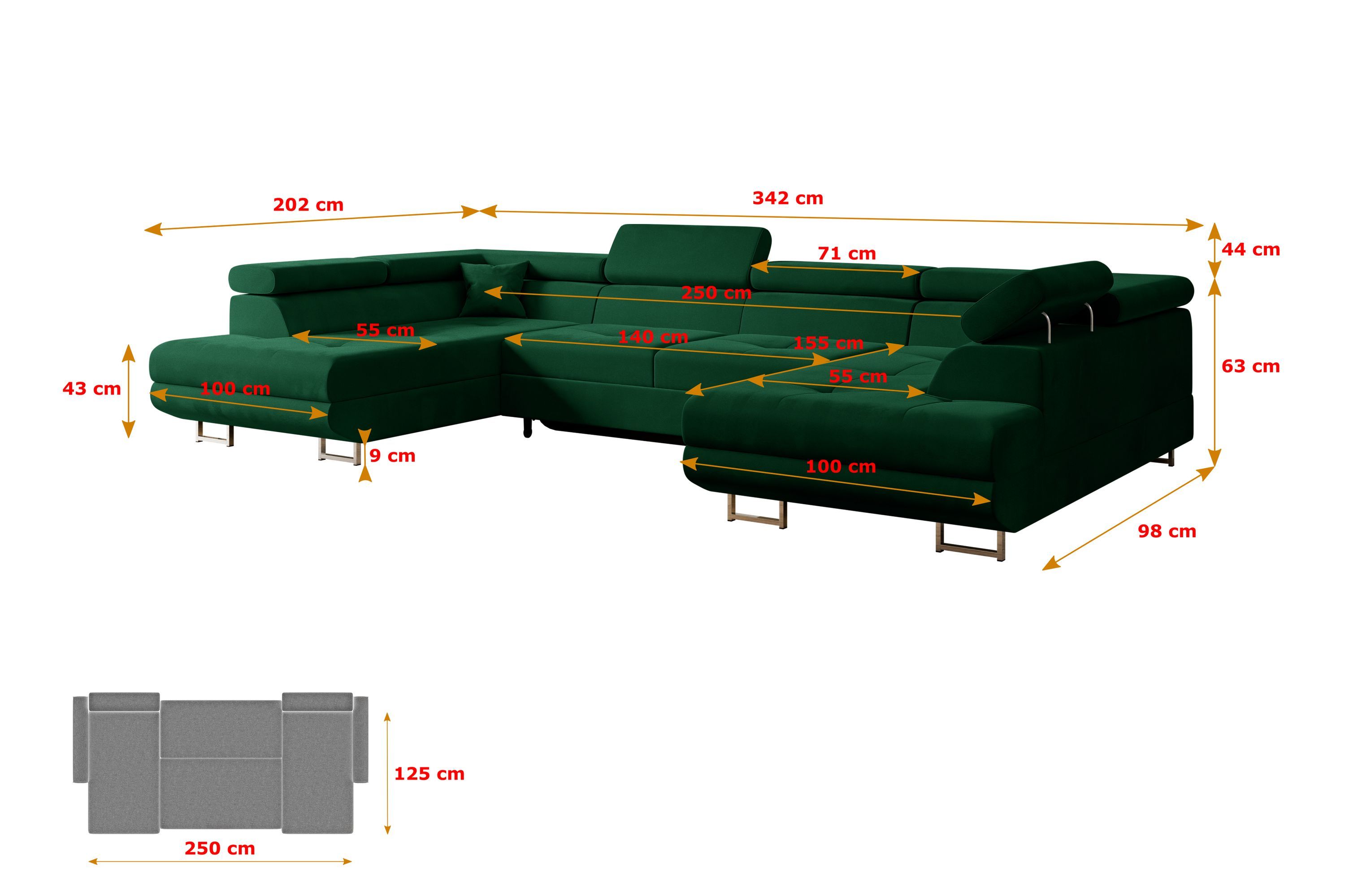 Ecksofa Palermo U-Form mit Schlaffunktion Bettkasten 345 cm Sofa XXL Big Sofas