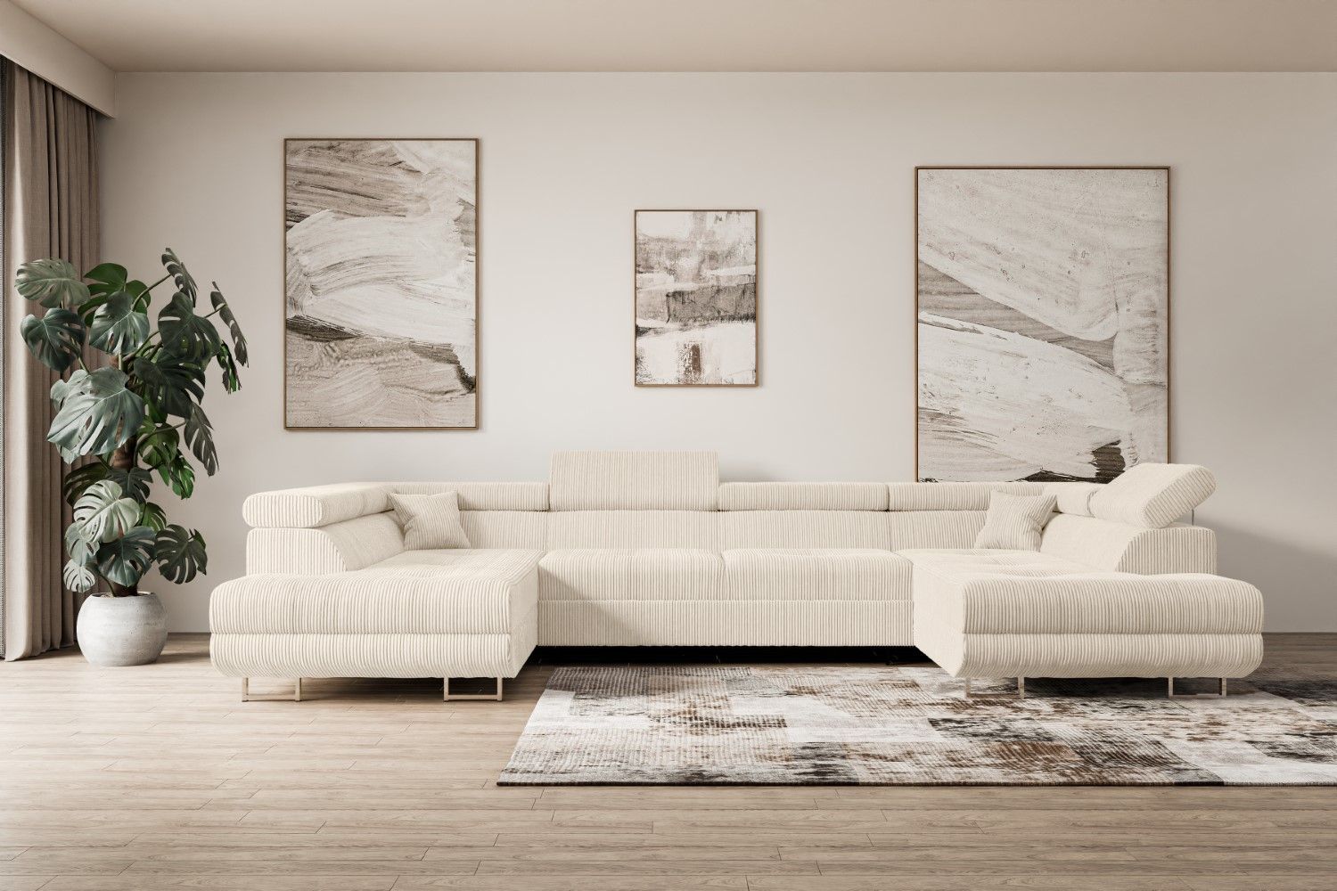 Ecksofa Caris mit Schlaffunktion Sofa Wohnlandschaft Couch einstellbare Kopfstützen