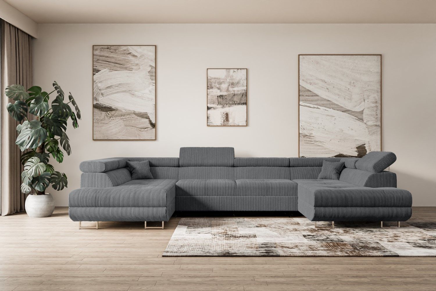 FEDVE Ecksofa DHAKA U Form Sofa mit Schlaffunktion Bettkästen Couch Sofagarnitur