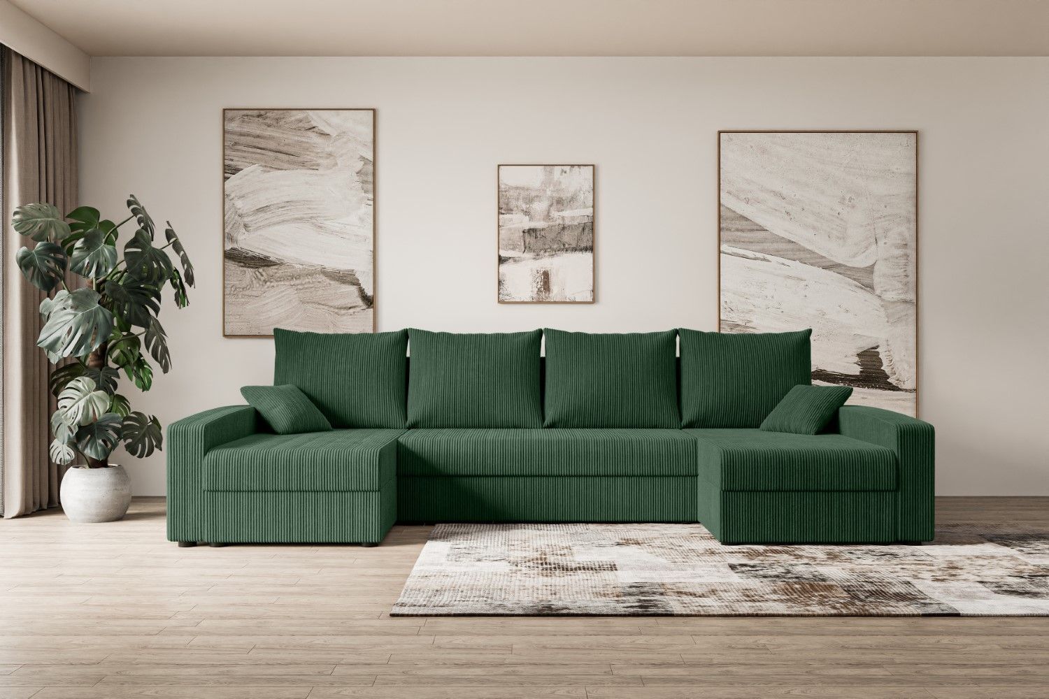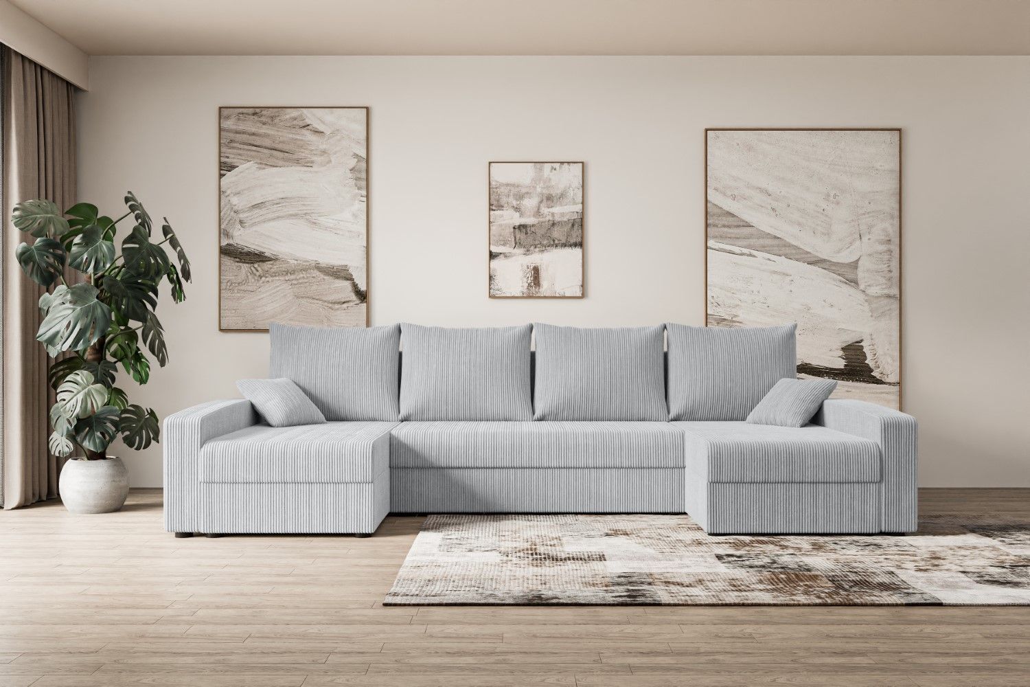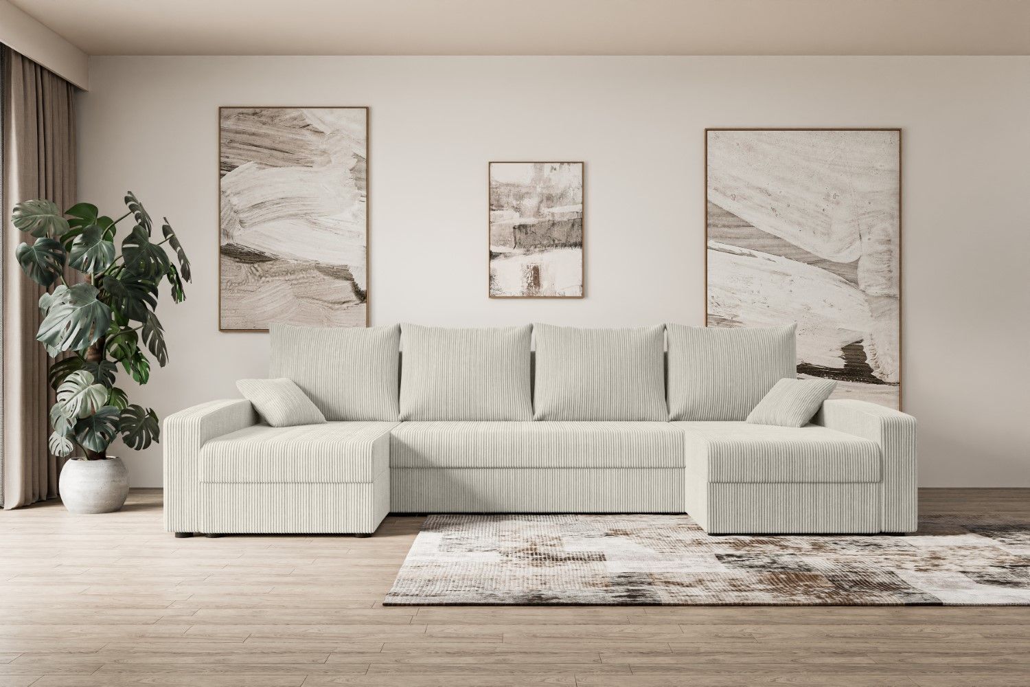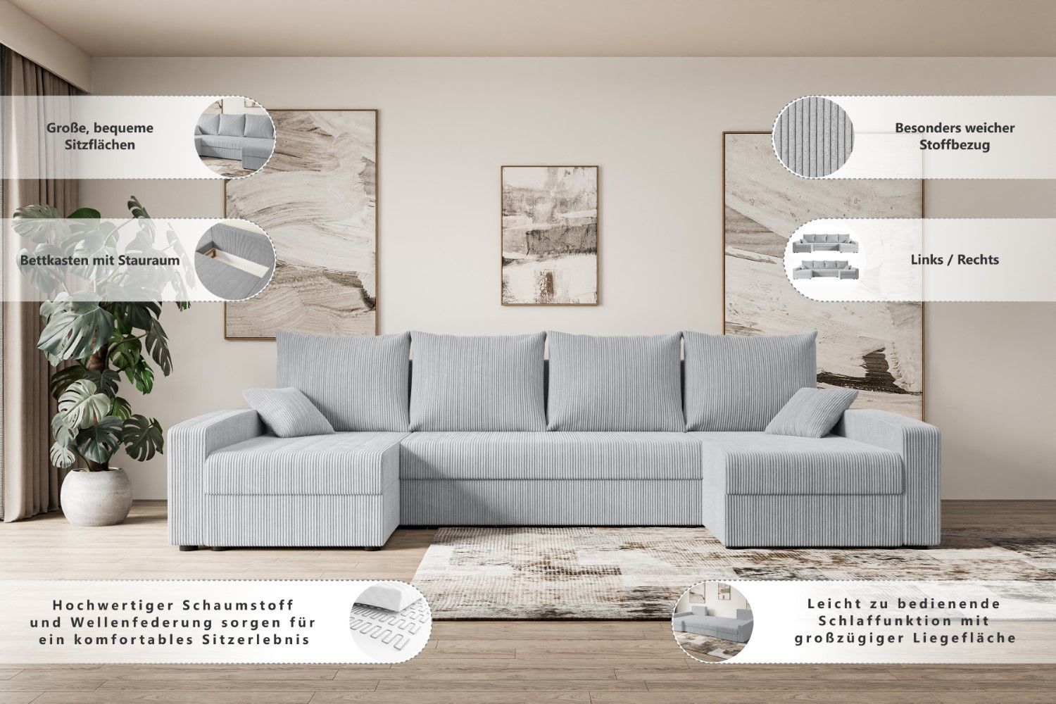 FEDVE Ecksofa Sekwana U Form Sofa mit Schlaffunktion Bettkästen Couch Sofagarnitur