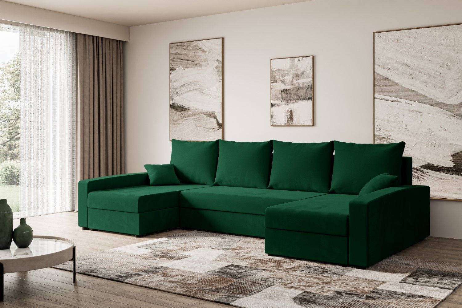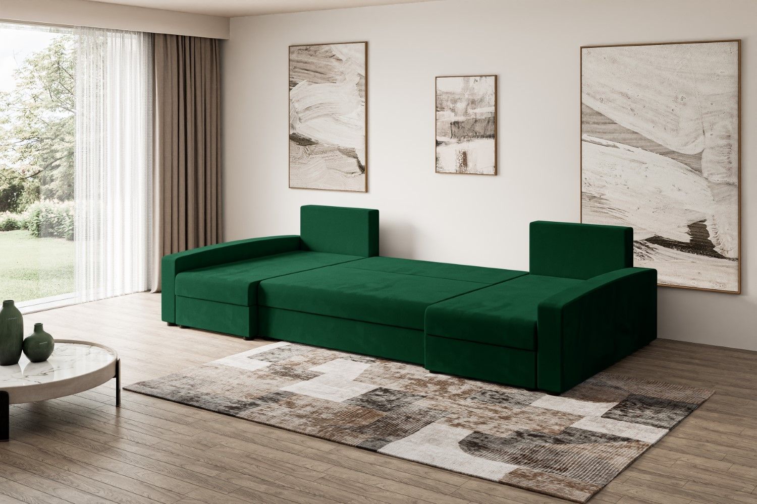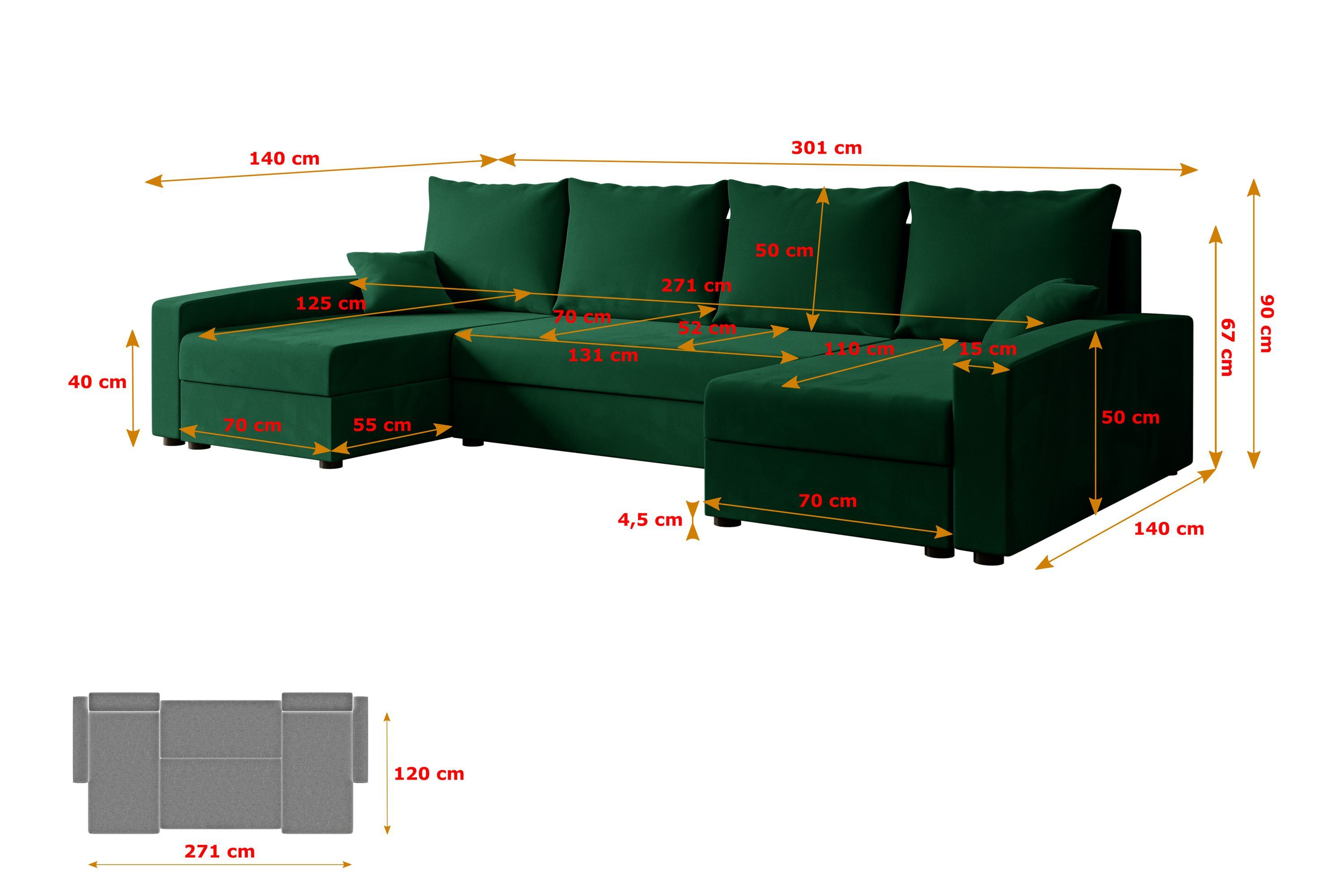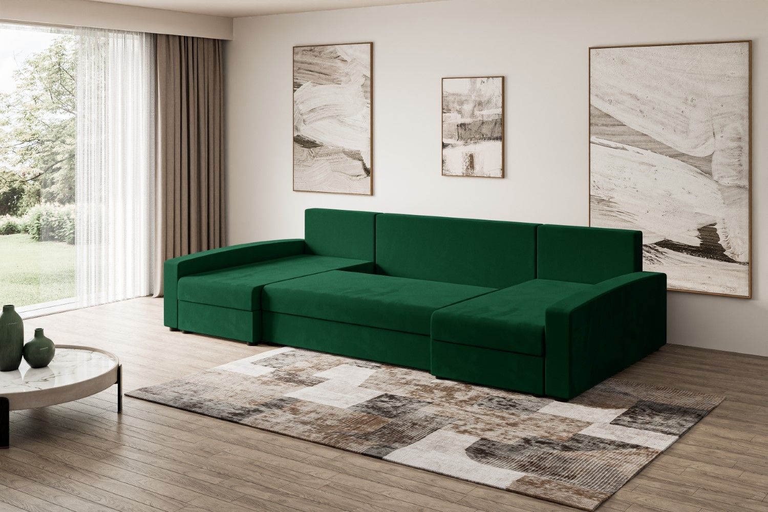 FEDVE Ecksofa Sekwana U Form Sofa mit Schlaffunktion Bettkästen Couch Sofagarnitur