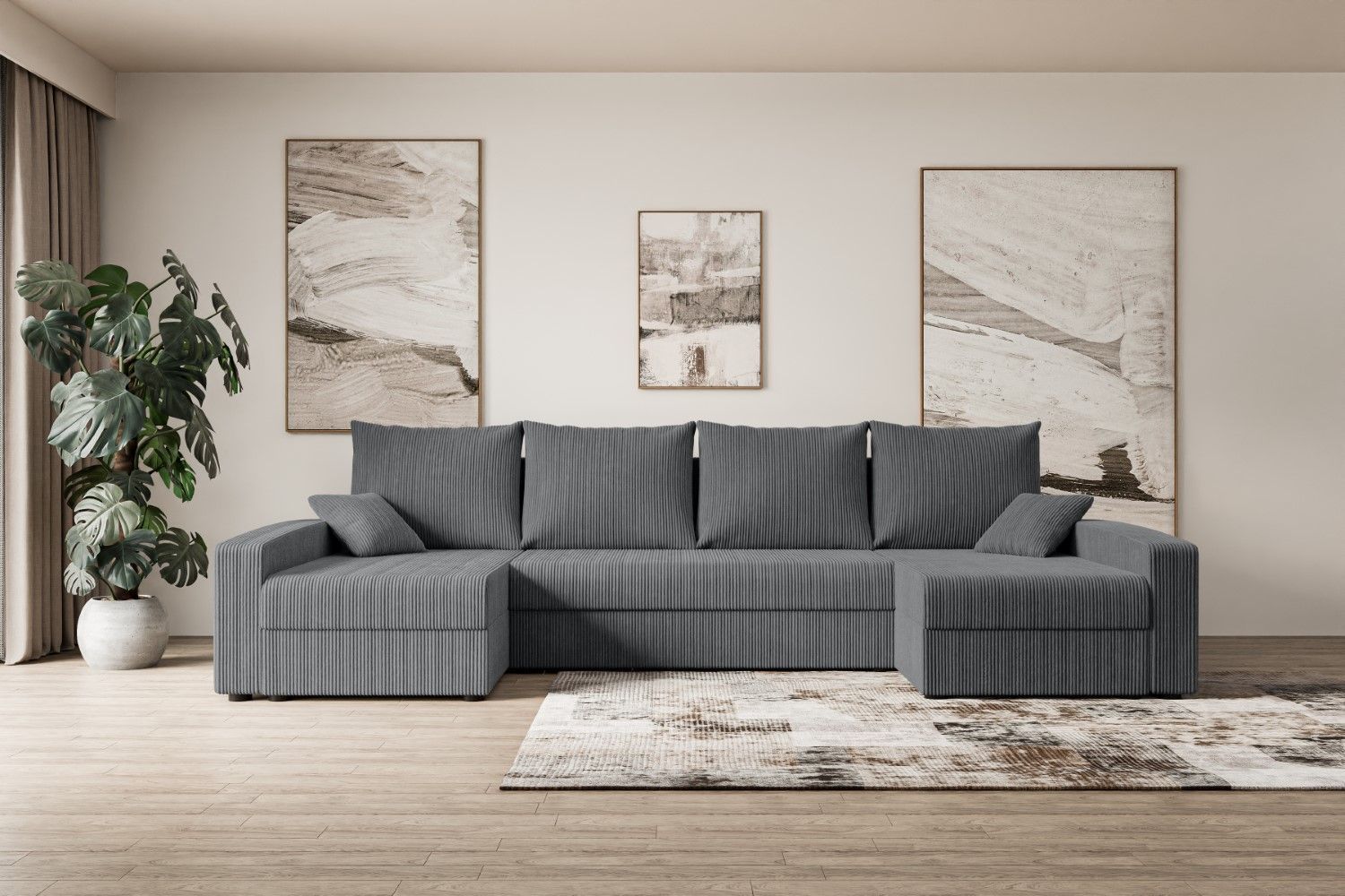 FEDVE Ecksofa DHAKA U Form Sofa mit Schlaffunktion Bettkästen Couch Sofagarnitur