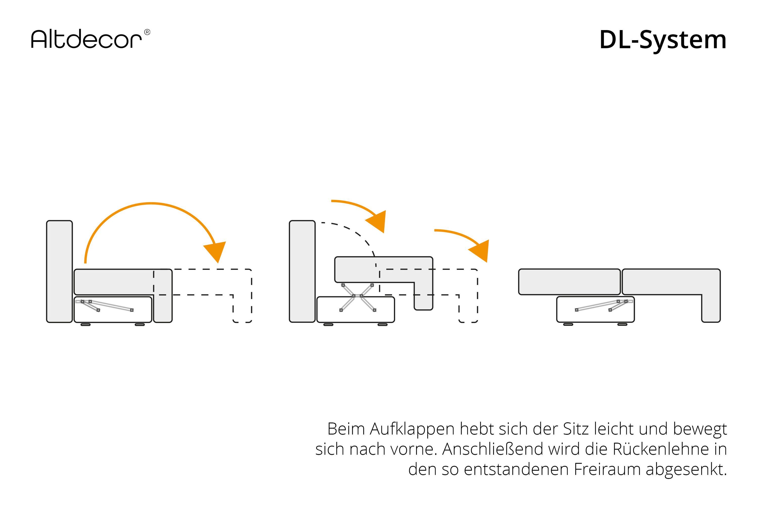 • Ecksofa mit Schlaffunktion DIVO - Couch, Sofagarnitur, Kopfteilverstellung, Federkern