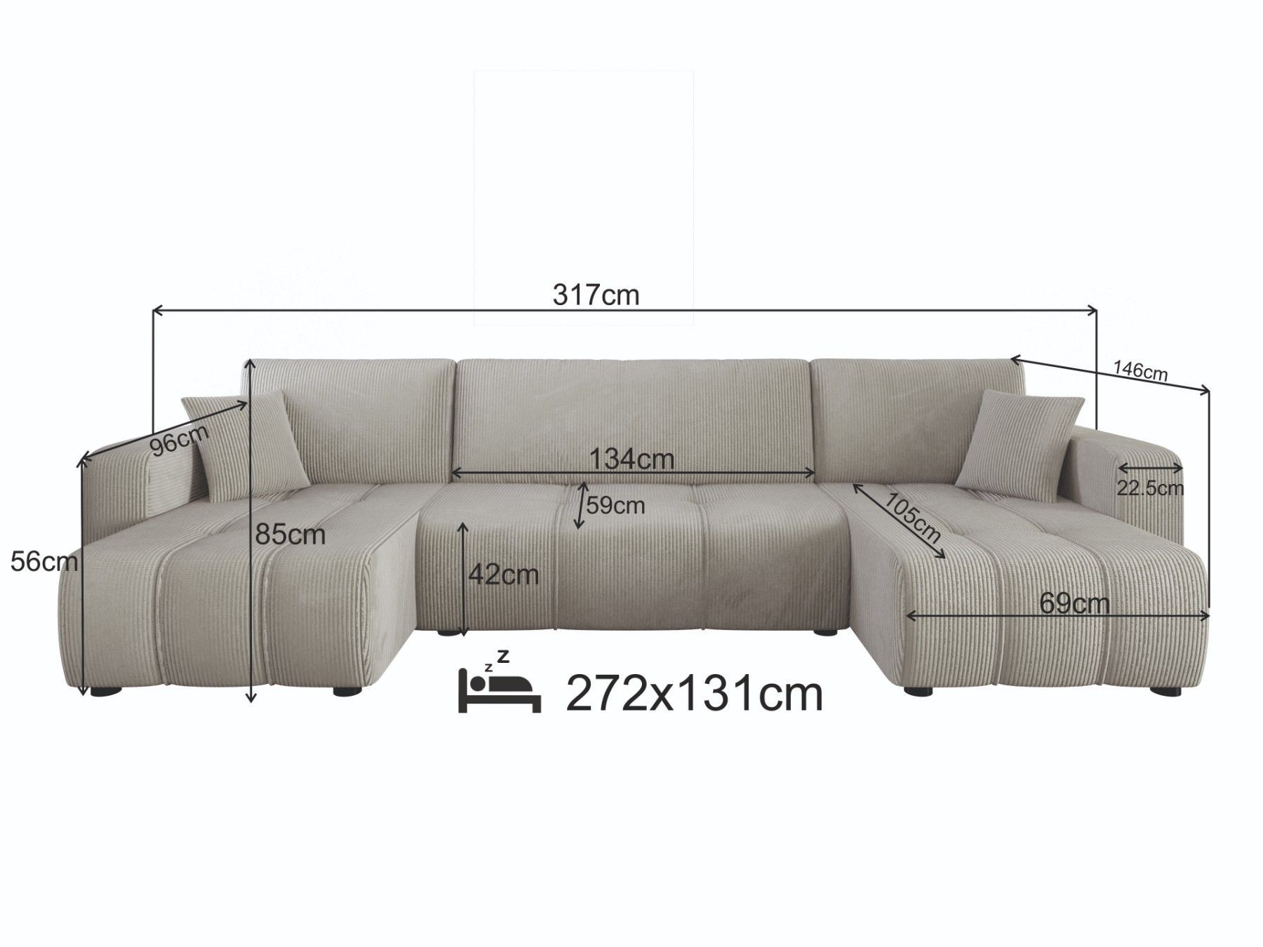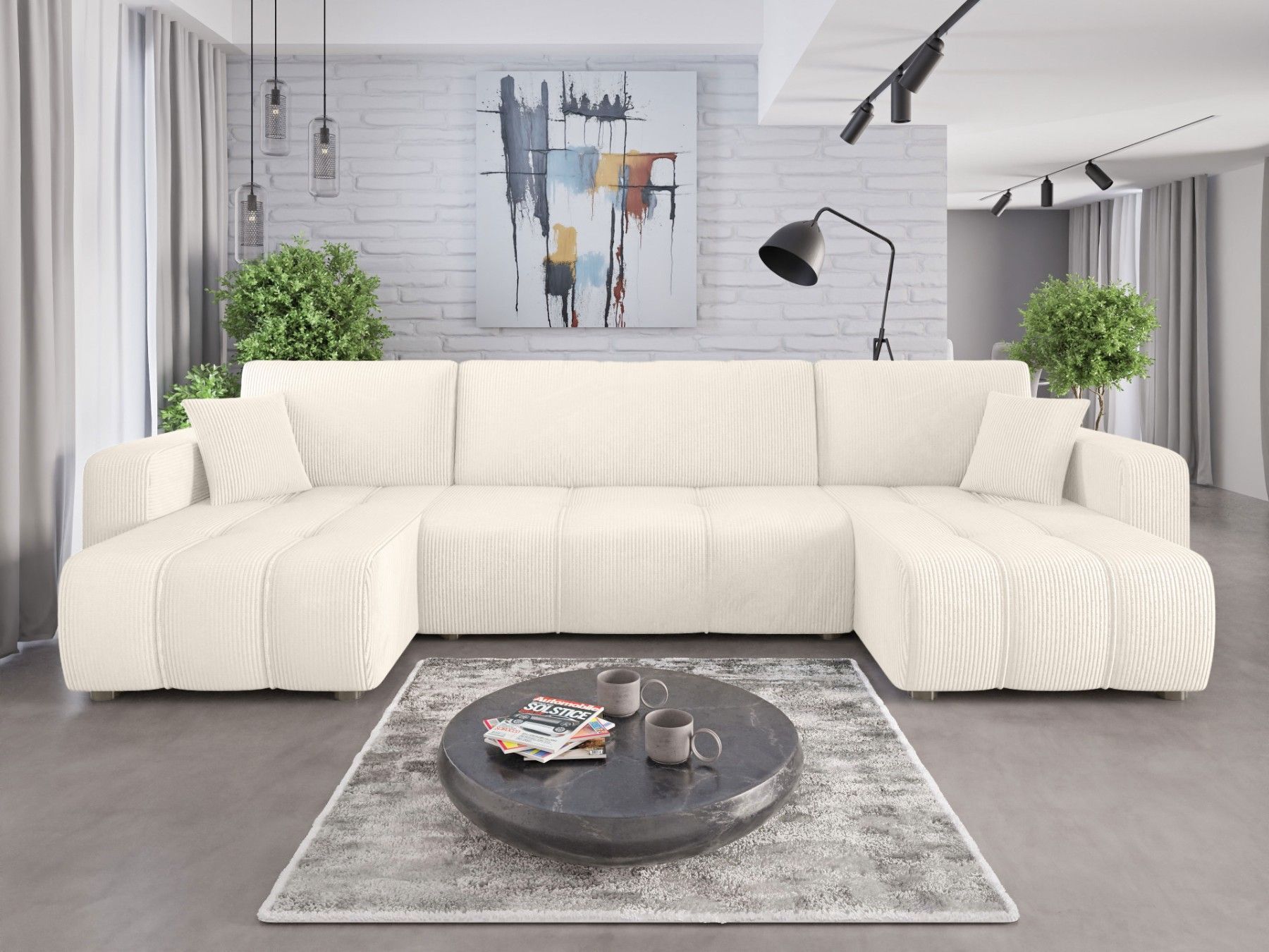 Couchgarnitur Alice in U Form mit Schlaffunktion Cord Stoff Poso 38 Ecksofa