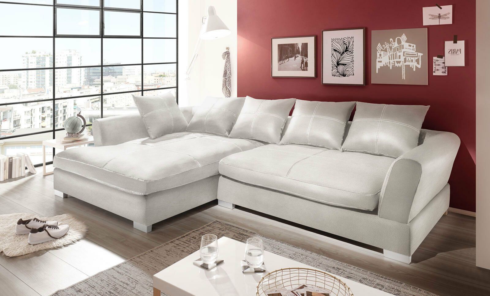 Couchgarnitur Weiss Sofa K-Leder Eck Sofa Wohnlandschaft Megasofa Links Design