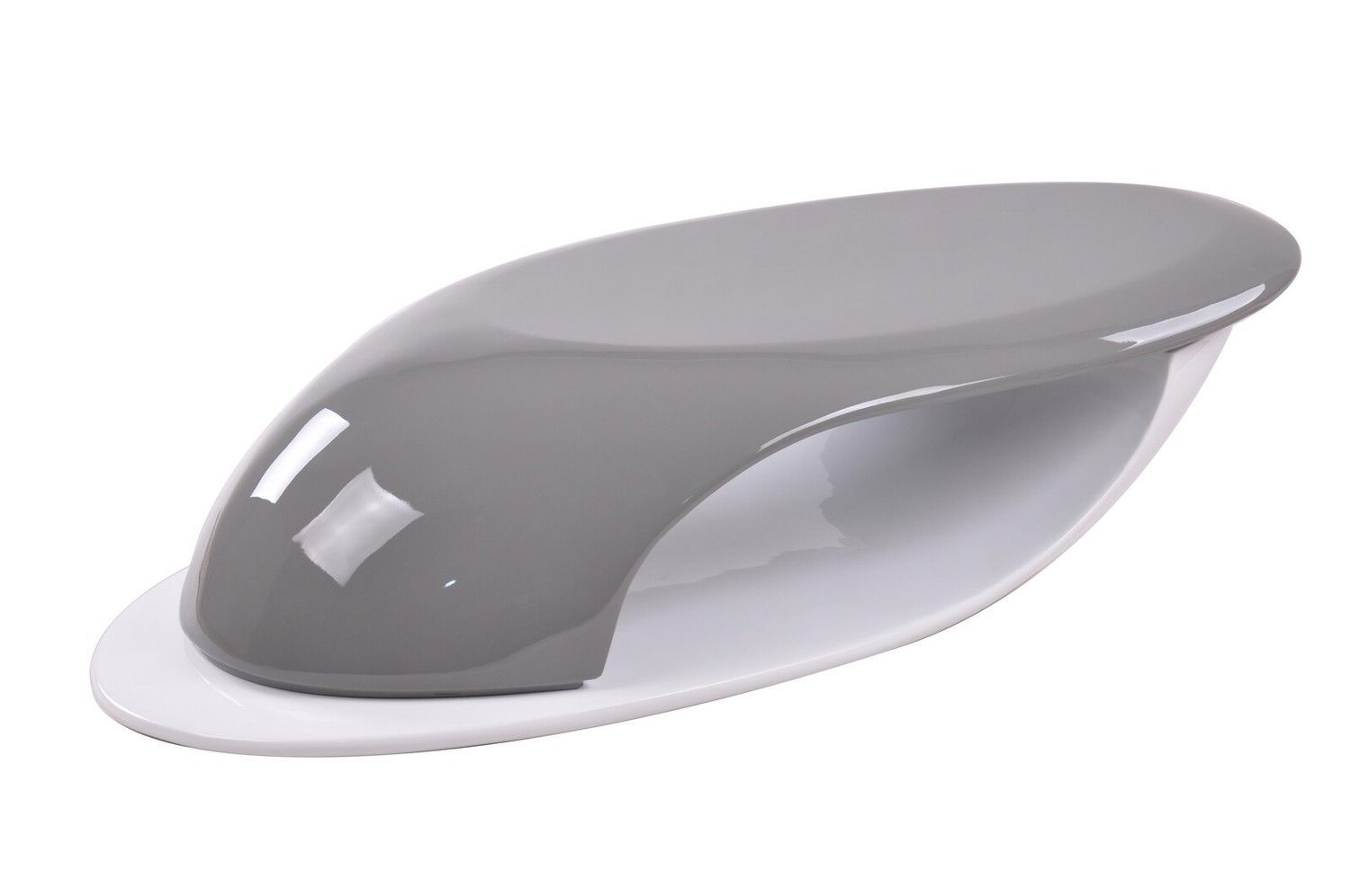 Couchtisch 130 x 58 cm Hochglanz Grau und Weiß mit Ablagefach Fiberglas