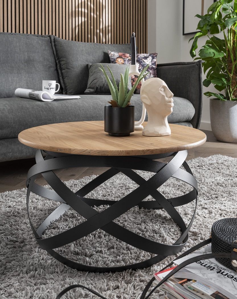 Couchtisch 70cm 'Lissabon' Wildeiche Stahl schwarz