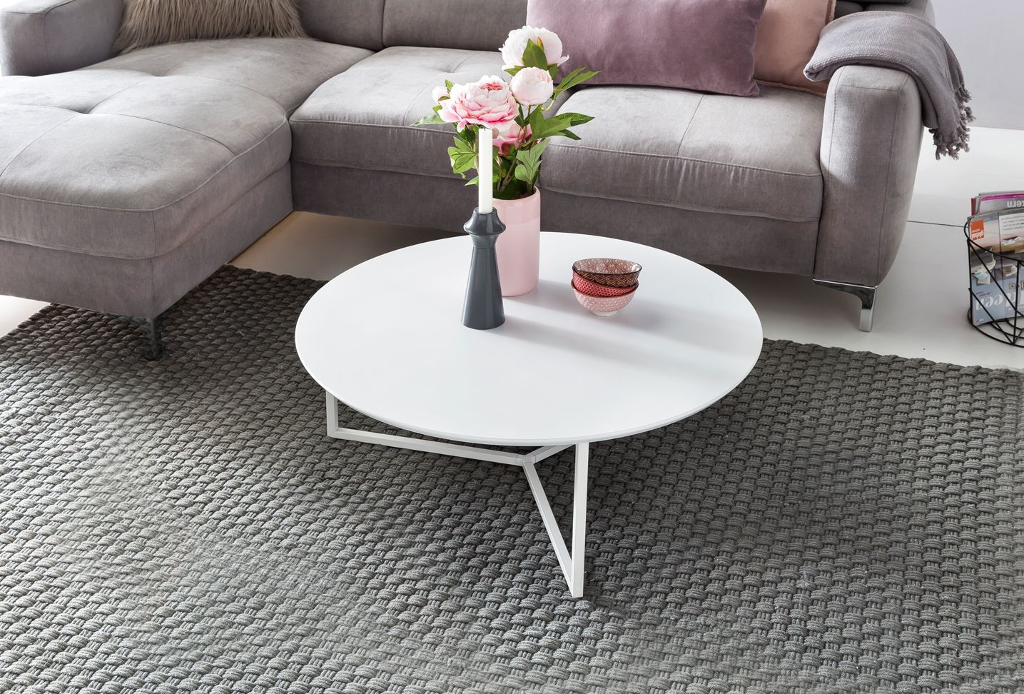 FineBuy Couchtisch 80cm Rund Weiß Matt Design Wohnzimmertisch Sofa Beistell Tisch