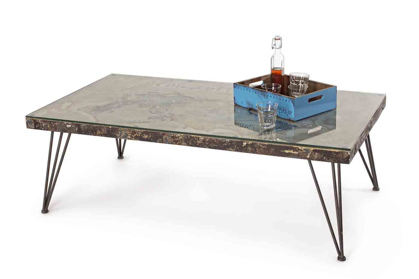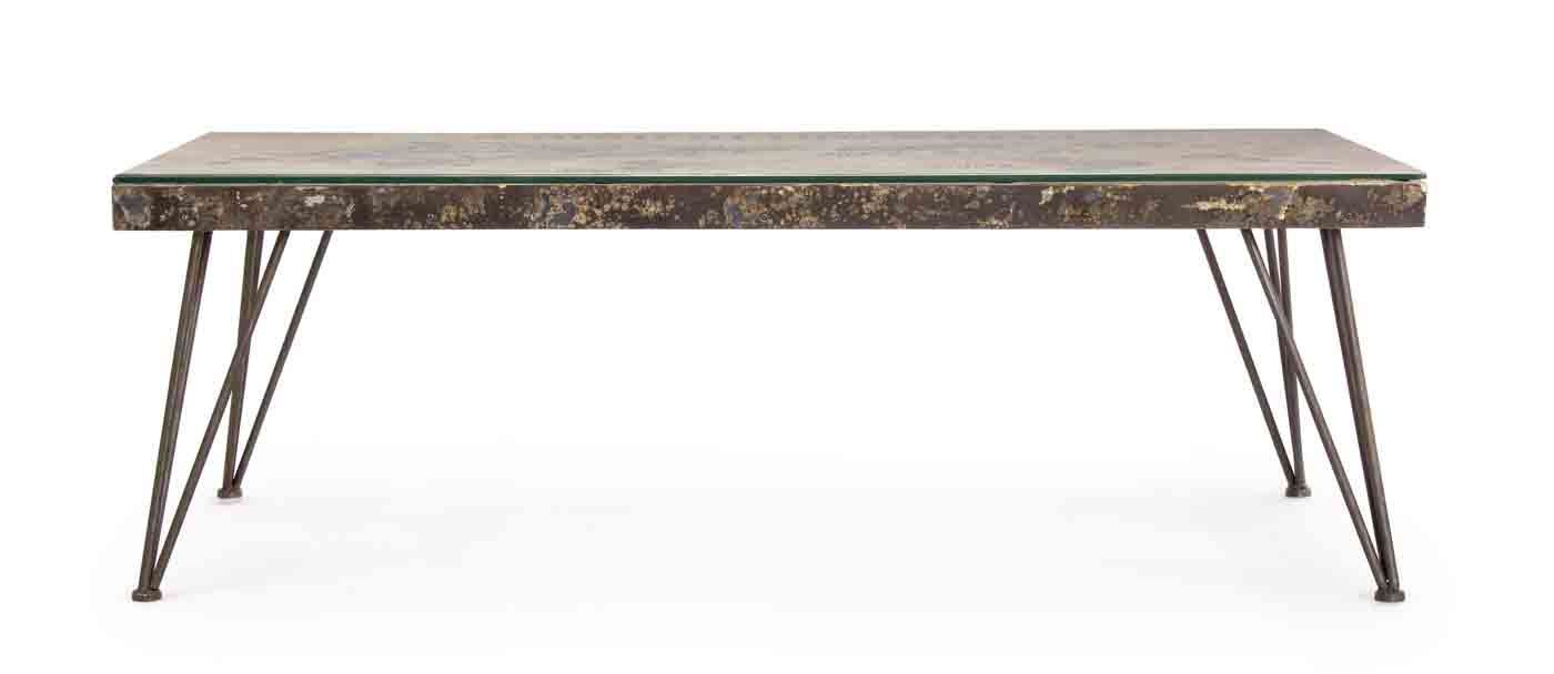 Couchtisch Atlantique aus Stahl und Glas, klassisches Design, natur,