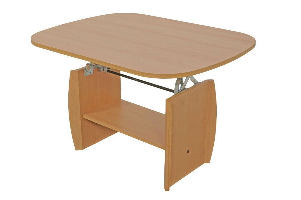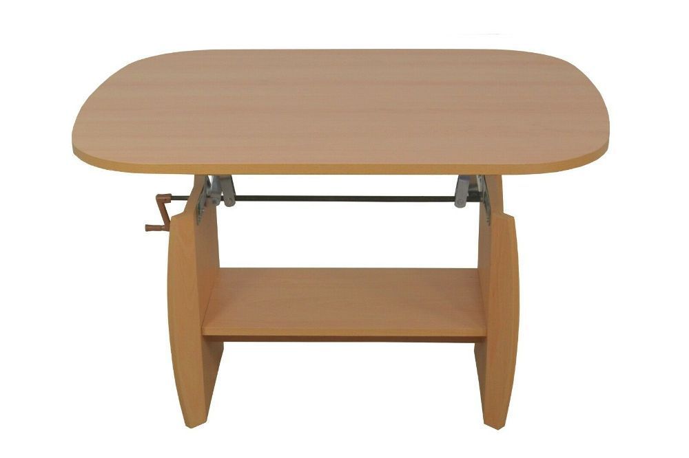 COUCHTISCH höhenverstellbar Buche Nachbildung Zeitloser Couchtisch aus Kunstoffbeschichteten Spanplatten. Mit einer pflegeleichten Melamin-Holz-Dekorbeschichtung. Unter der Tischplatte ist ein fester Boden. Der Tisch wird zerlegt geliefert. mit Kurbelwelle aus Metall Maße: ca. 90 cm Breite x 68 cm T