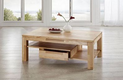 Couchtisch massiv Buche / Wildeiche Wohnzimmertisch mit Schublade und Ablage H1