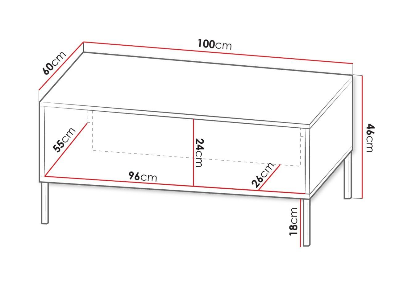 Couchtisch Debora 07 Wohnzimmertische mit zwei Klappen Metallfüße M24