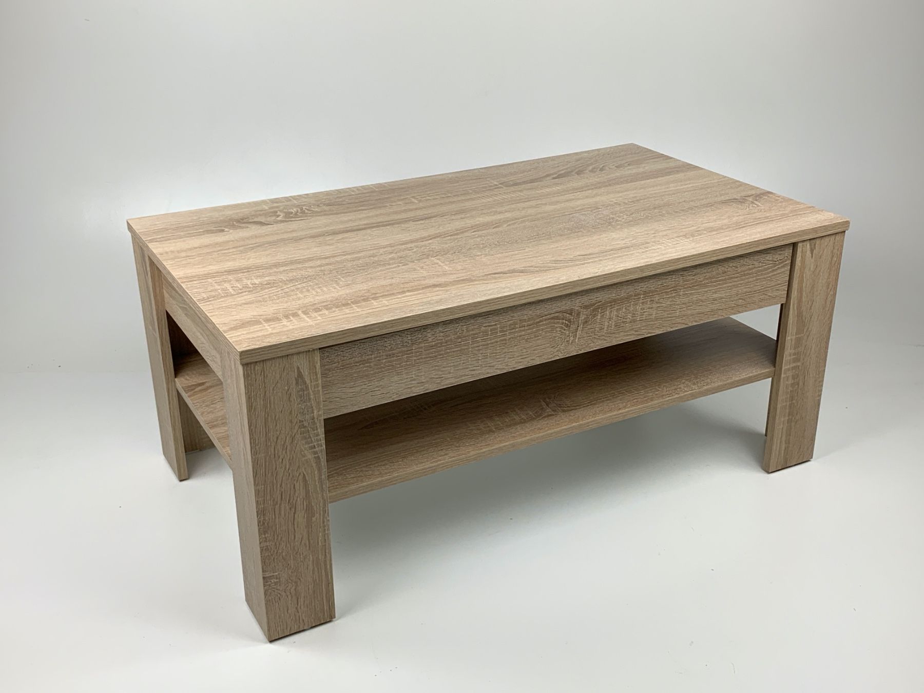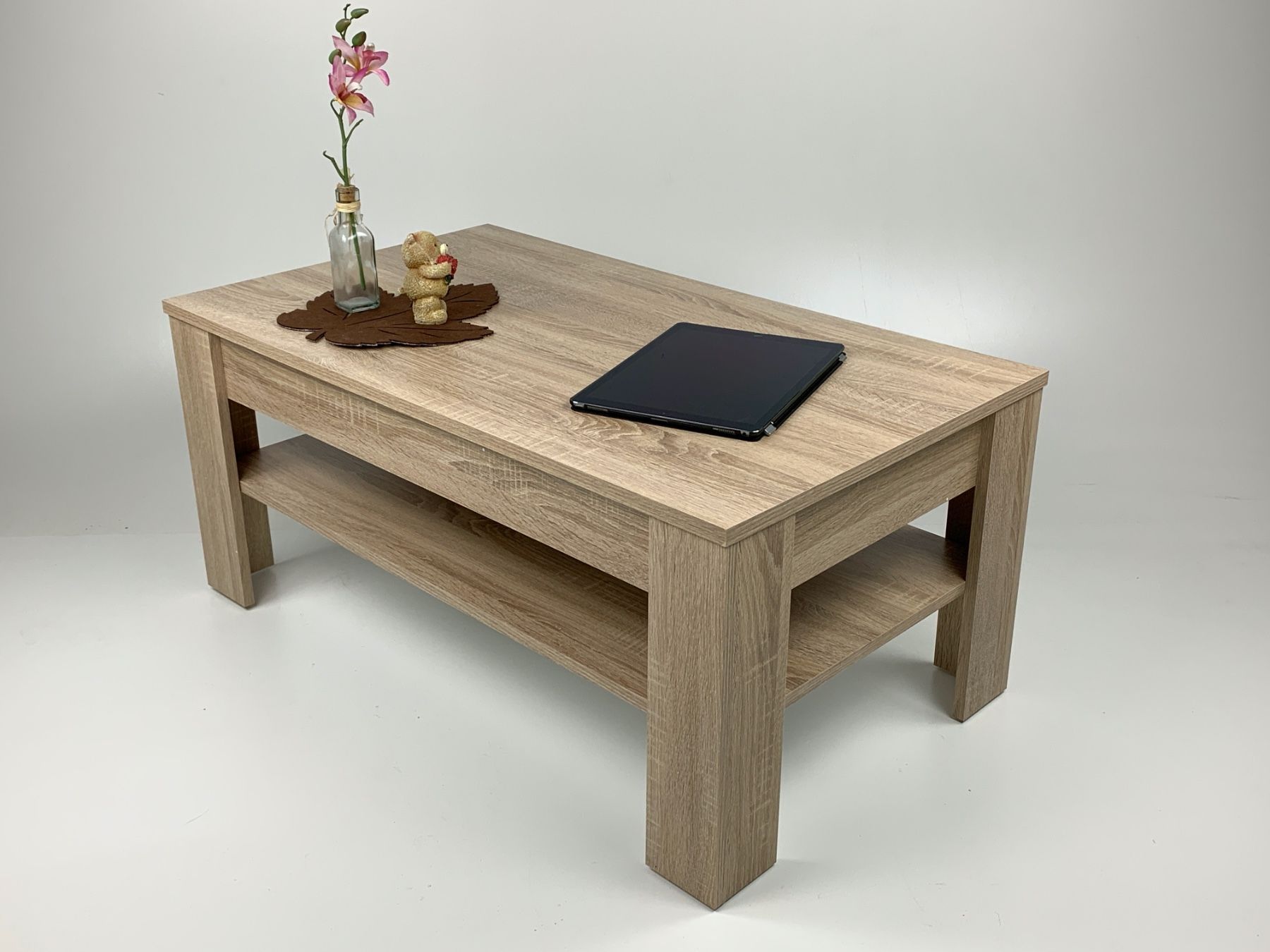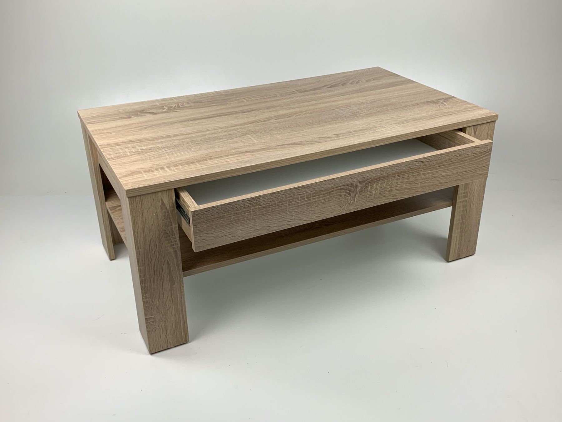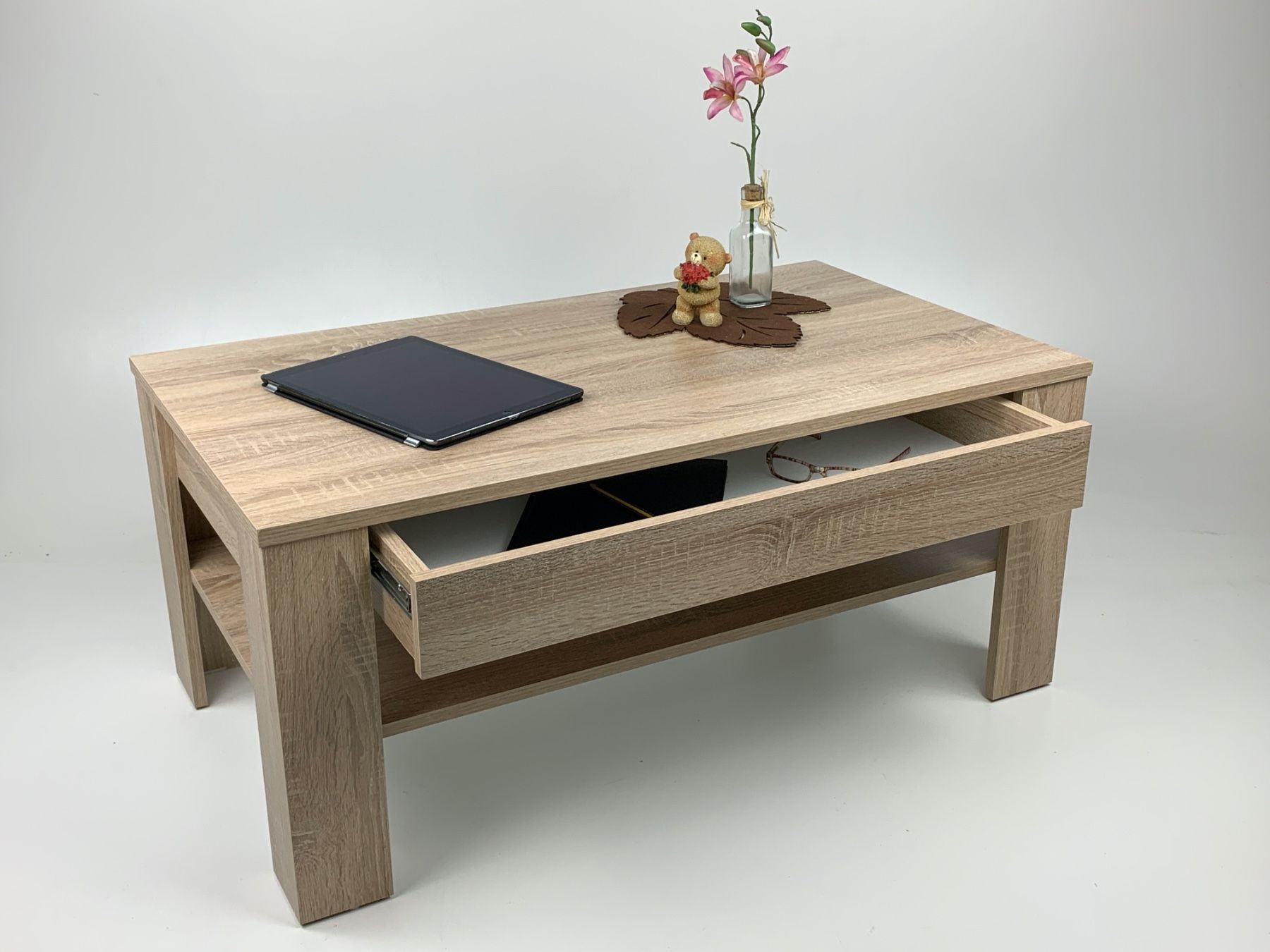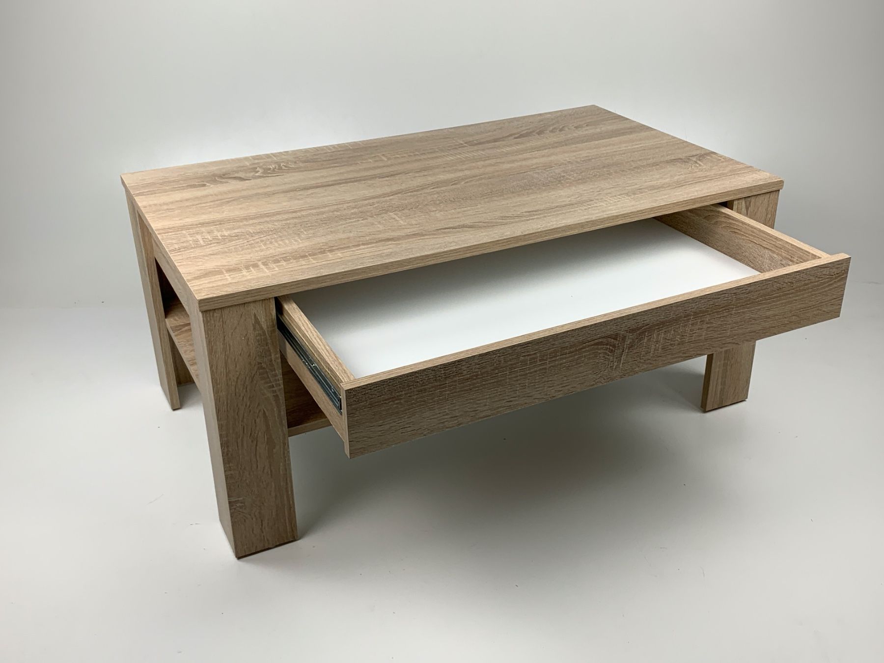 Couchtisch Ewa Sonoma Eiche hell Sägerau mit Schublade und Ablage . Made in Germany